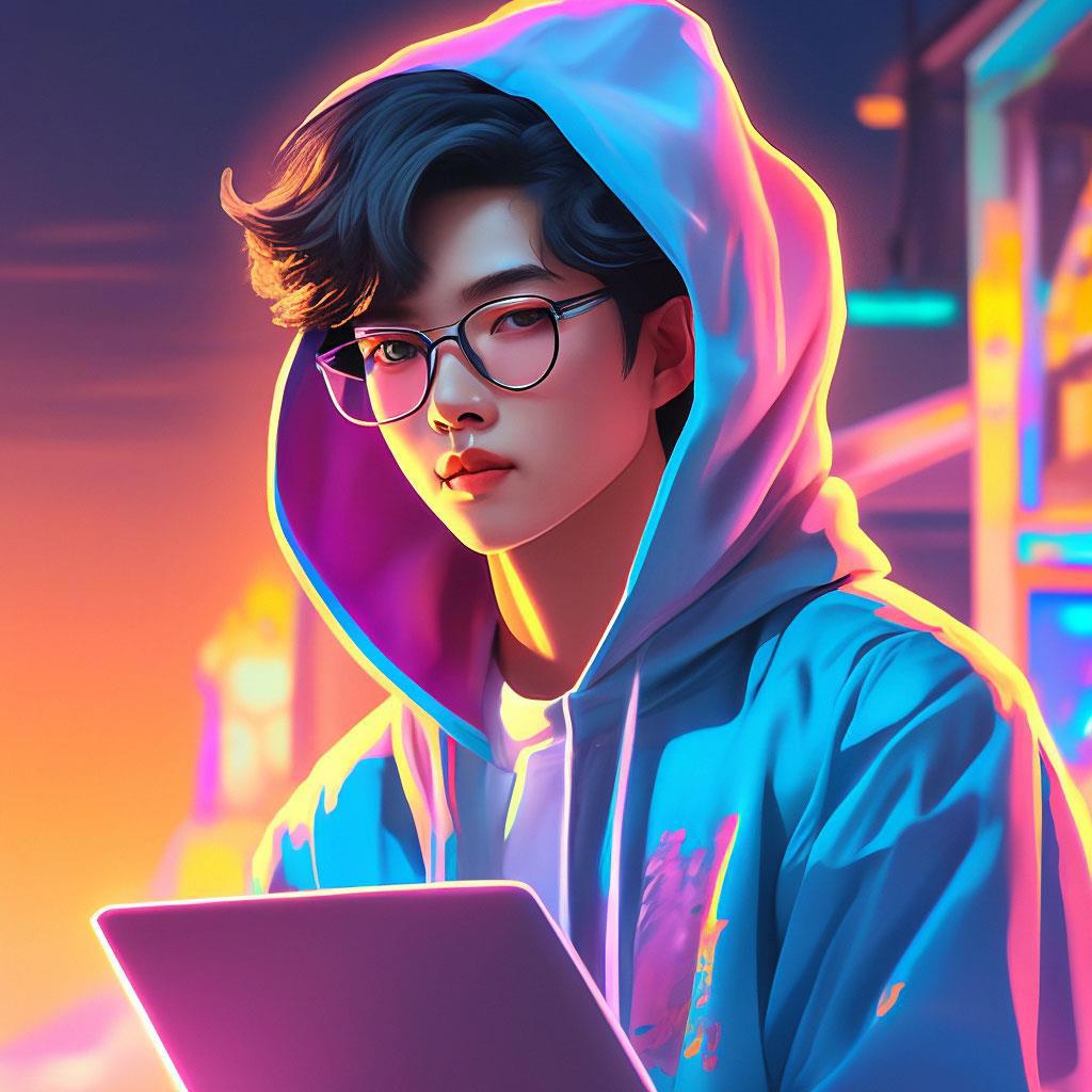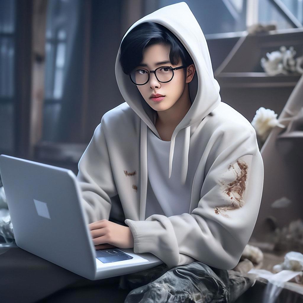 Ли Хан - компьютерный гений и главный герой из истории про хакеров. Вот так его МонАи нарисовал:
