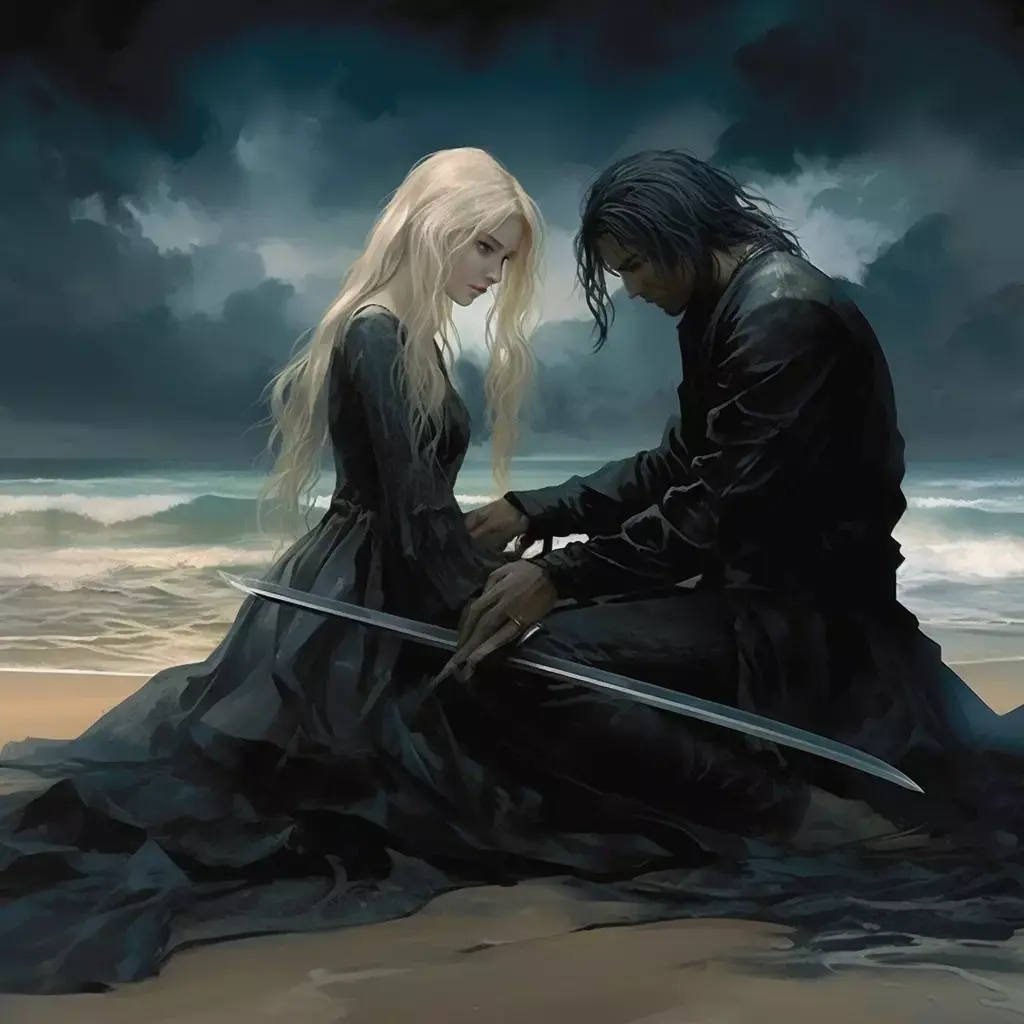 Мужчины часто дышали, они не могли заставить себя сказать хотя бы слово, слабо сжимали рукоятки мечей, в то время как незнакомец медленно оголил длинный клинок с изогнутым лезвием.