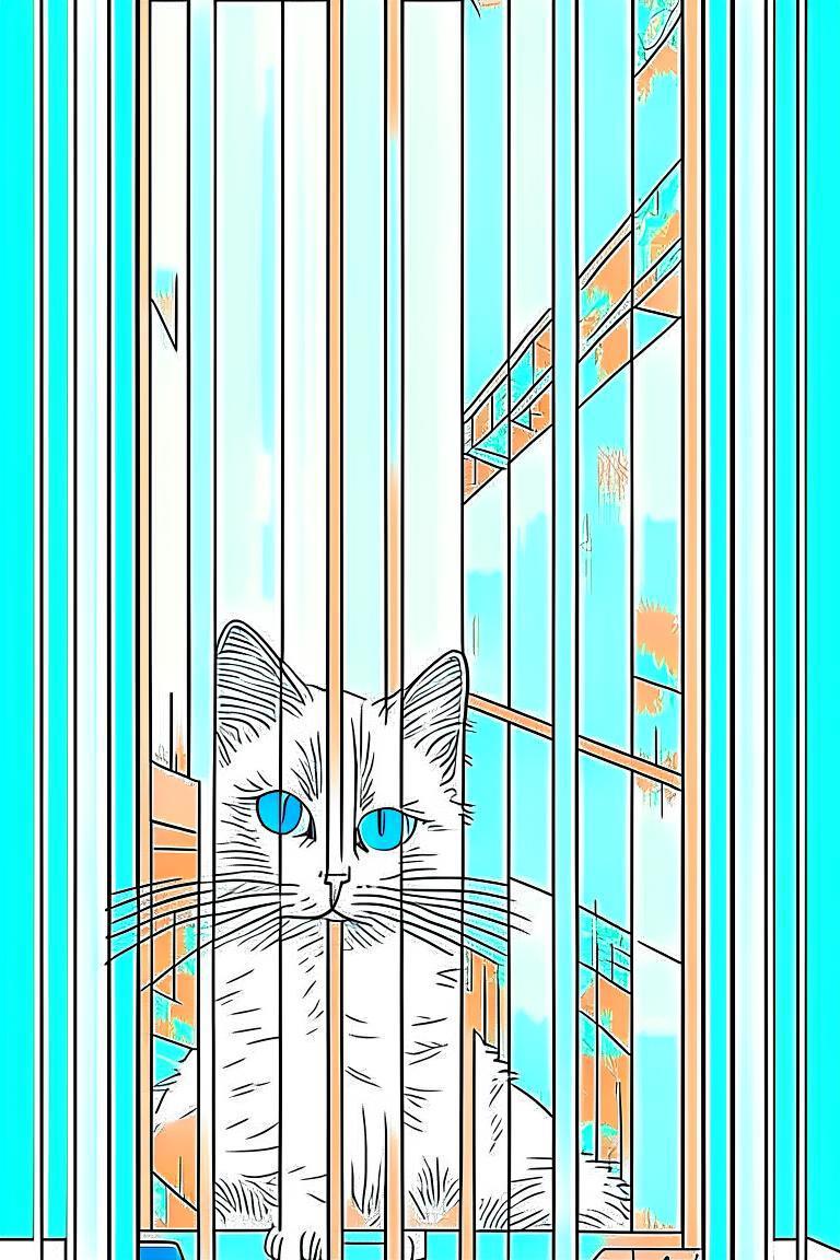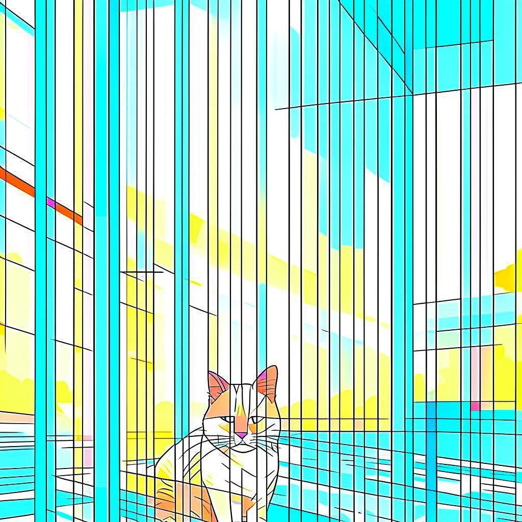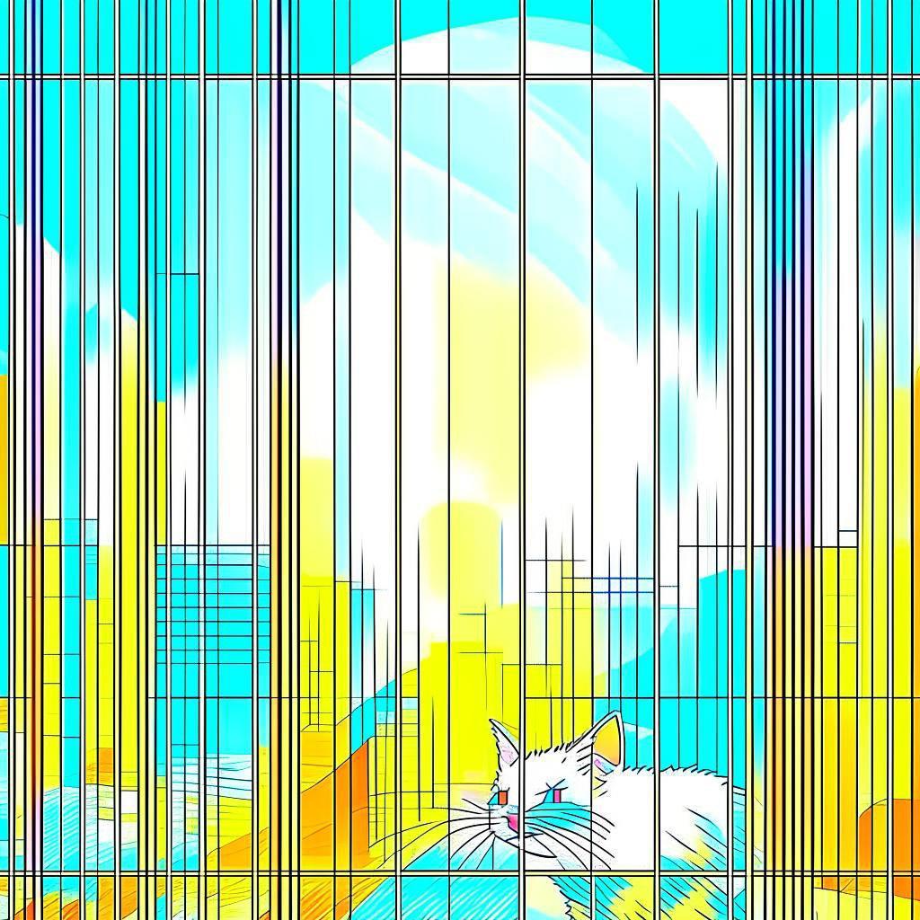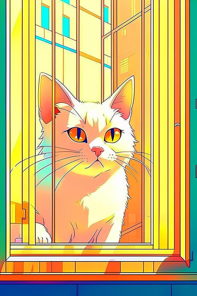 Сидит кошка на окошке, щурит желтые глазищи, акварель
