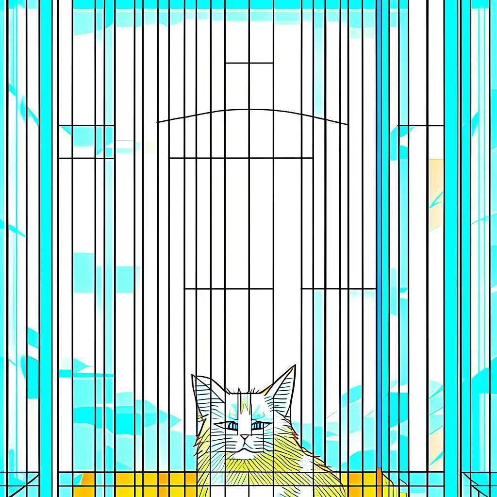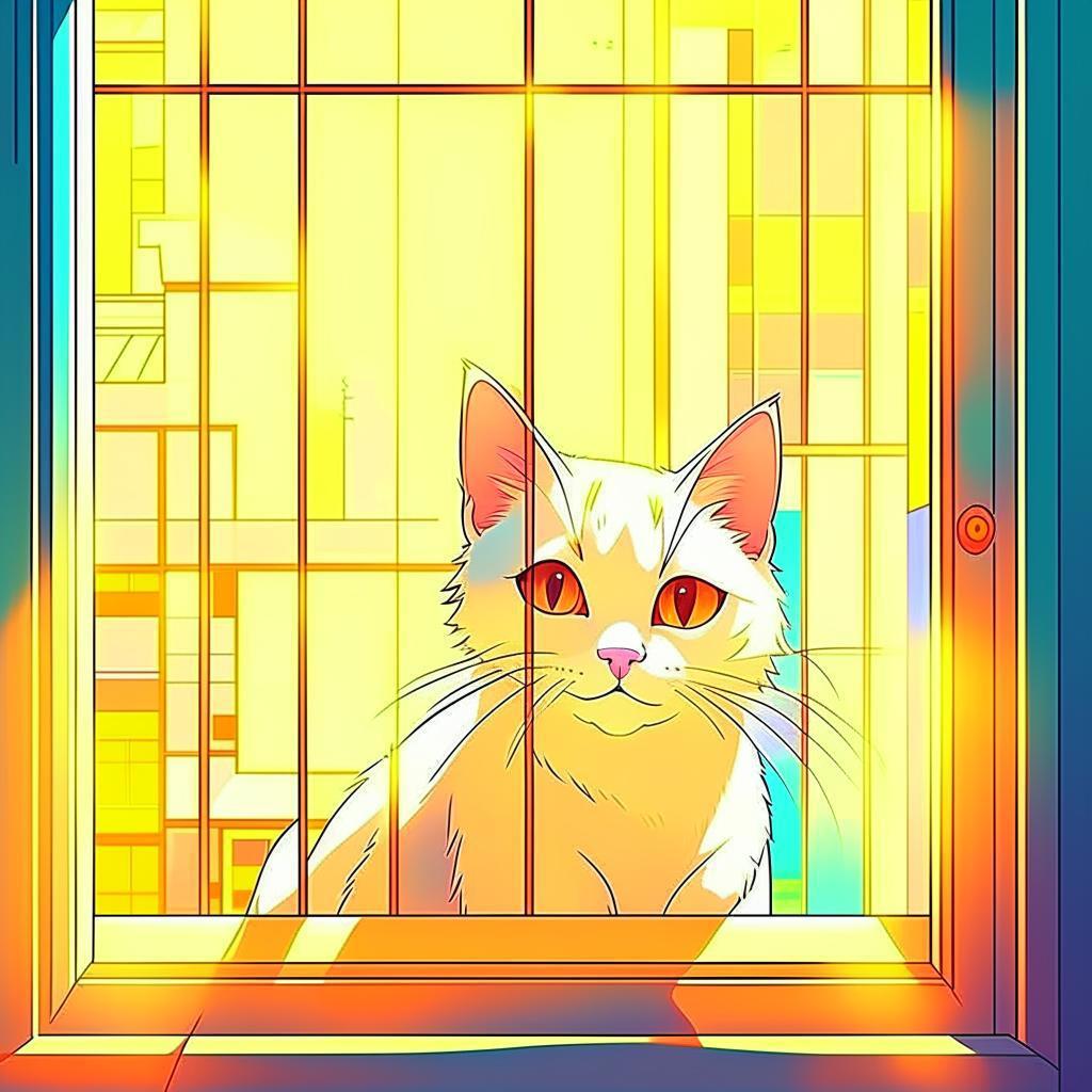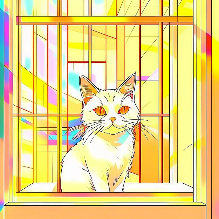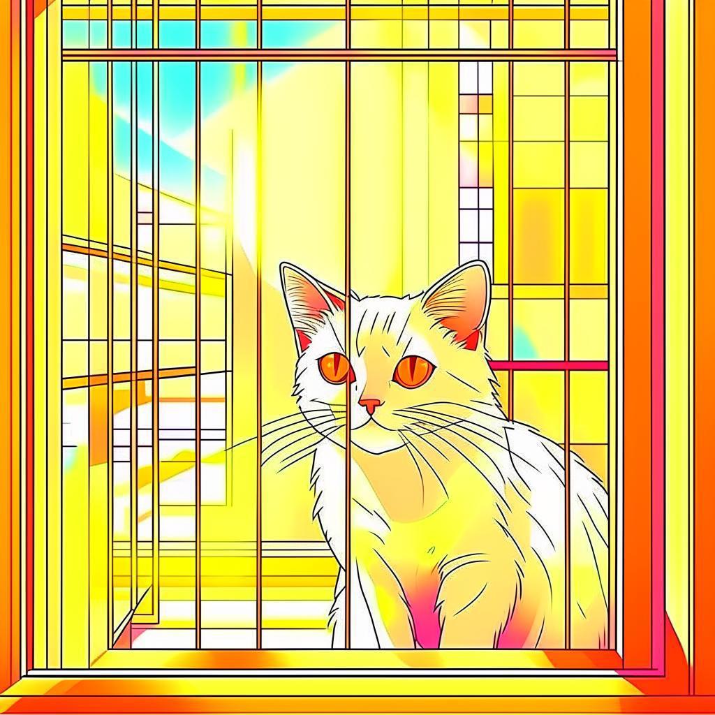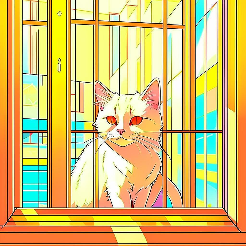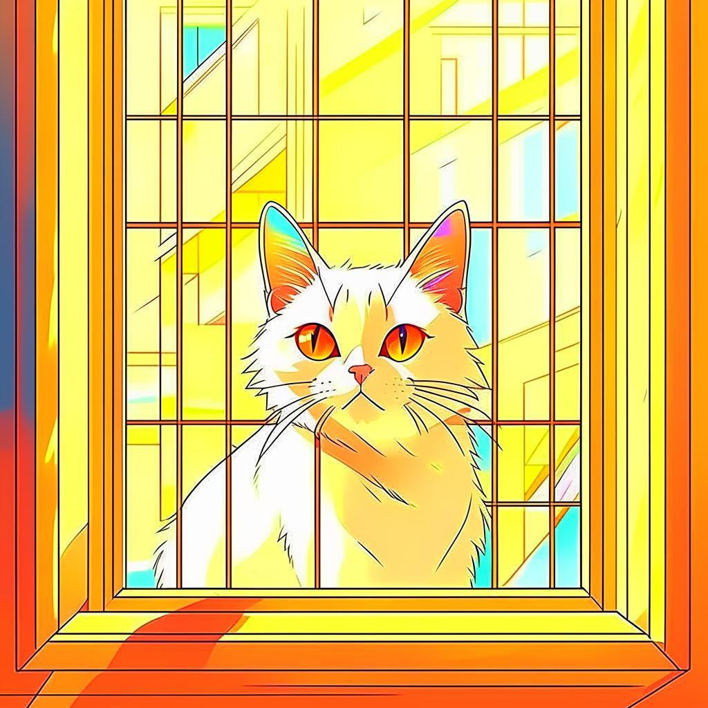 Кошка... сквозь окошко! Можно выделить фрагменты витража.