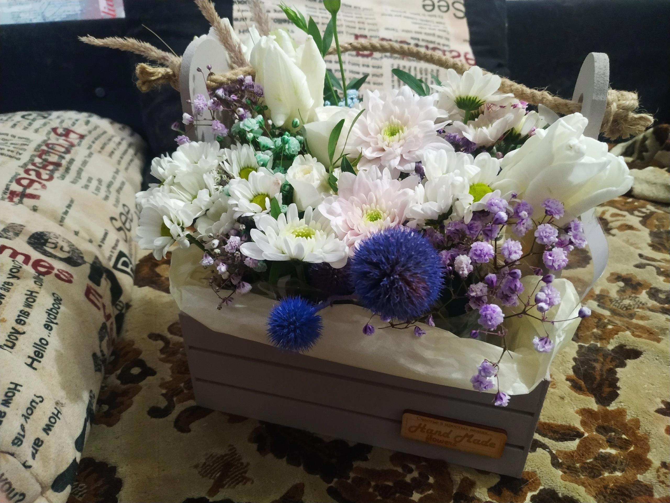 Цветы я получаю только теперь от одного студента своего (да муж как-то у меня учился языкам) Какой прекрасный букетик он мне очень нравится.