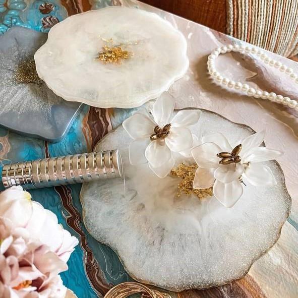 1. Так, во-первых, помимо масла я как-то увлеклась интерьерной живописью и эпоксидной смолой. Не скажу, что прям каждый день ваяю, но порой нет-нет, да залью подносик или подстаканник из эпоксидки))