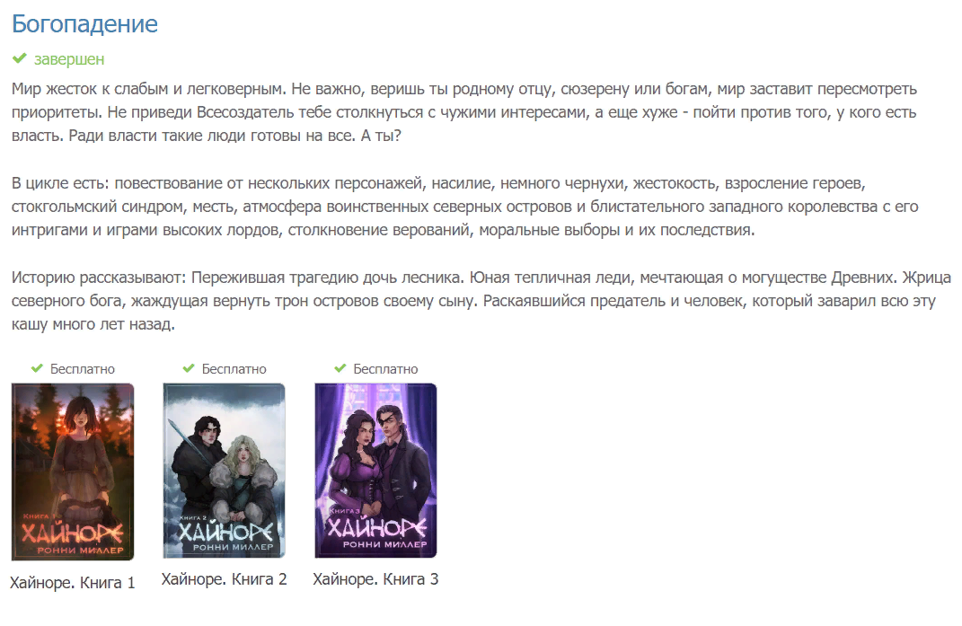 Что ж... Официально заявляю: "Хайноре", она же "Богопадение" - все! Трилогия полностью лежит на сайте и ждет вашего внимания, а я прощаюсь с героями (кто знает, возможно не навсегда), и готовлюсь нести вам новых. Потому что у самурая что? Нет цели, есть только путь.