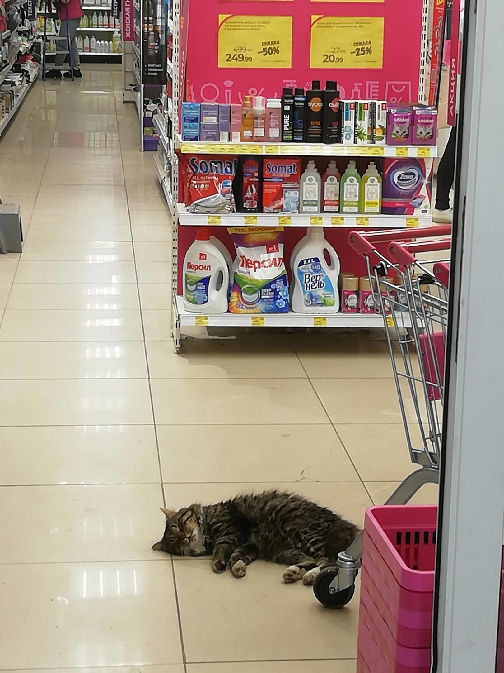 1. Пятница - значит, несомненно нужны котики. Вот недавно встретился кот-уставший-продавец :)