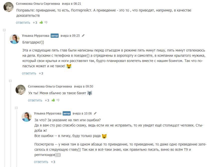 Но вот человек читает (!) твою книгу, находит ошибку (мы сейчас об объективных ошибках, а не имхах всяких), дальше он настолько вовлечён в процесс, что указывает тебе на неточность. Человек переживает за книгу. Он вступает в диалог, а не молча рассылает скрин знакомым с подписью «посмотрите, и за это писево хотят сто рублёв!». По сути, он бесплатно подрабатывает внештатным корректором. За свои же деньги!