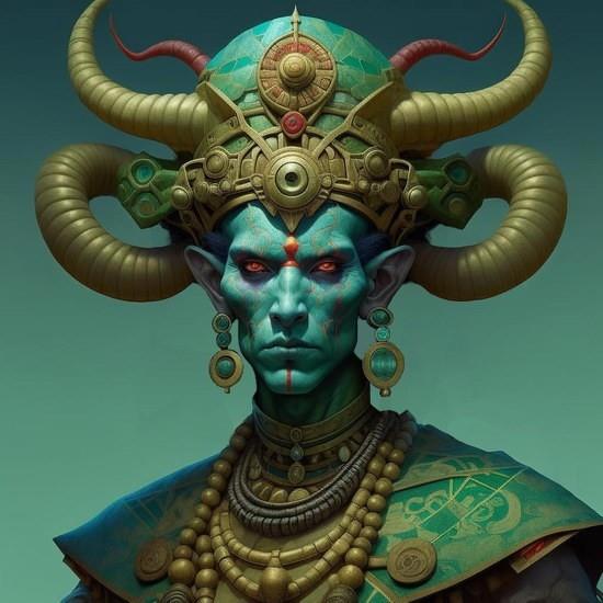 А это, судя по высокотехнологичному приспособлению на голове, кто-то из богов Желязны, из "Князя света".