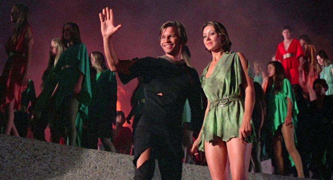 Люди из будущего, по представлениям 40-50 летней давности, либо ходят в серебристых комбинезонах - это если они занимаются техническими работами, либо - если это отдых - непременно одеты в тогу с драпировками на плечах на римский манер.