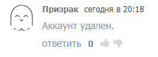 ). Возвращаюсь за комп и вижу уведомление о новом комменте под «Дахакой». С трепещущим сердцем кликаю, дабы узреть, что же мне там написали? Похвалили или обосрали? А тут... вот это! Какой-то Призрак, и аккаунт удален. Причем судя по всему, юзер оставил коммент и сразу выпилился с ресурса, ибо я отсутствовал всего ничего. Это чтобы я не смог ответить?