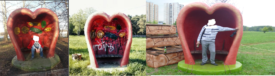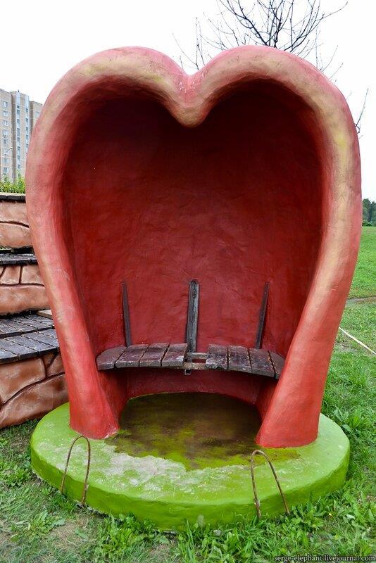Построить там ничего не построили, так и стоит место впусте. Разве что воздвигли парковую скульптуру-скамейку из бетона «Сердце». Спереди она еще туда-сюда, а вот сзади...