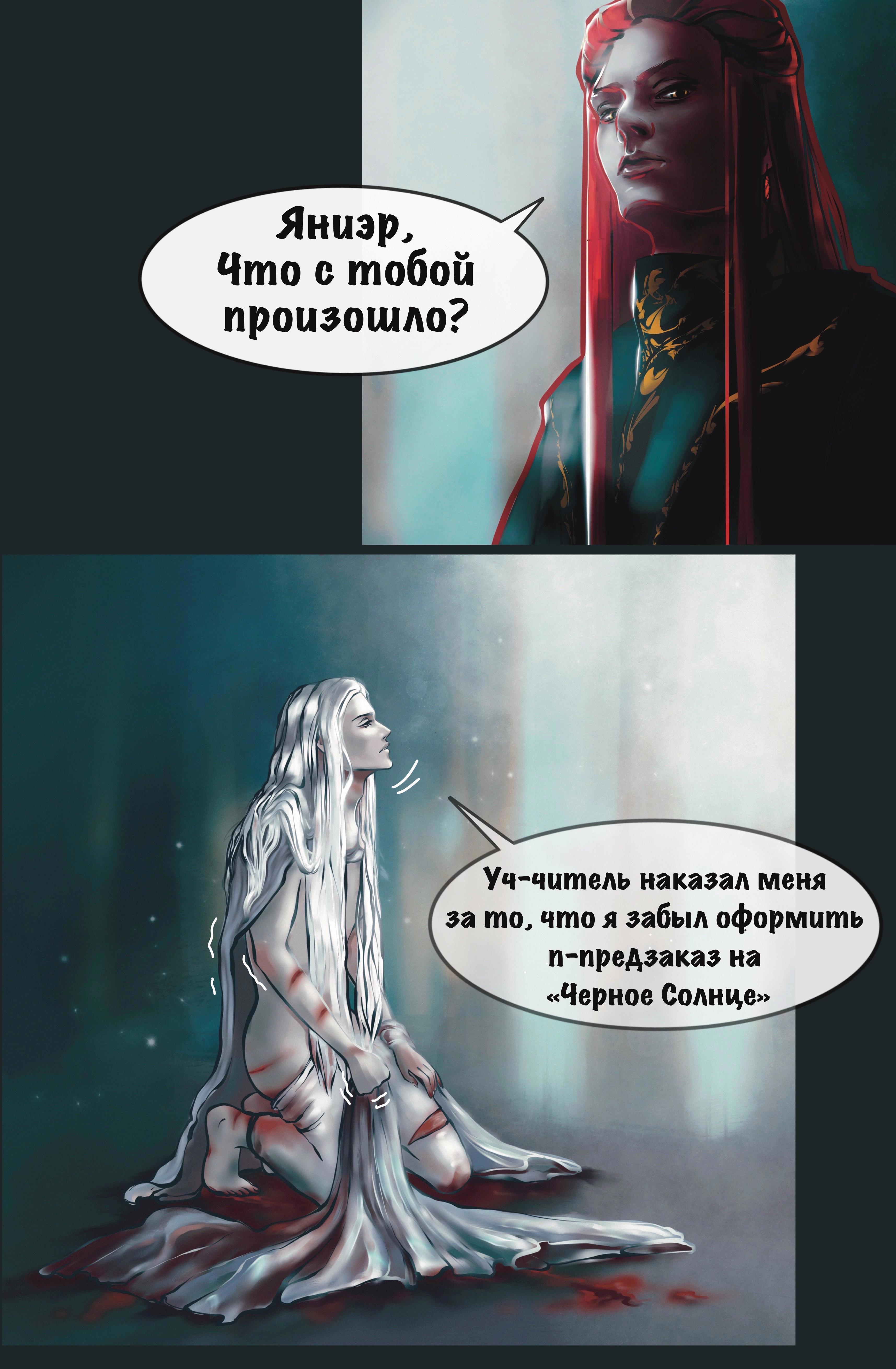 Пока все мы с нетерпением ожидаем скорого выхода "Чёрного Солнца" из предзаказа, чудесная художница Elian придумала мотивационный мини-комикс с главными героями романа!..