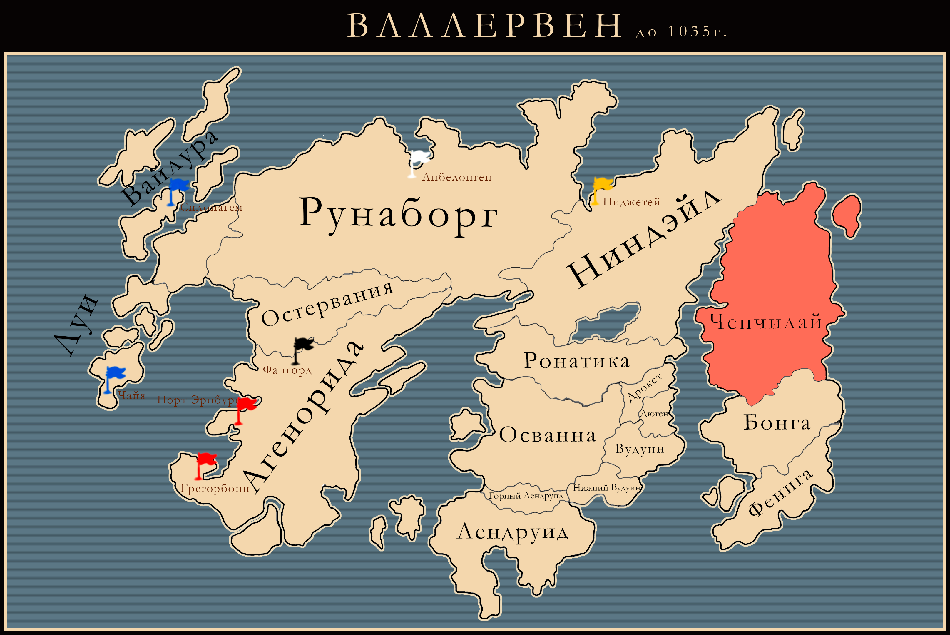 Единственное государство иксудинов, сохранившееся к моменту 1049 года — Ченчилай, расположенный на востоке Валлервенна. Государство считается одним из самых слабых и отсталых на всем материке. Причина тому — труднодоступность и малочисленное население. За 5 веков раса иксудинов так и не смогла оправиться от былых потрясений и восстановить большую популяцию. Власть в стране принадлежит нуаранам, после окончания катастроф пришедшим на эти земли с юга. Культура нуаранов оказала сильнейшее влияние на культуру и обычаи иксудинов.