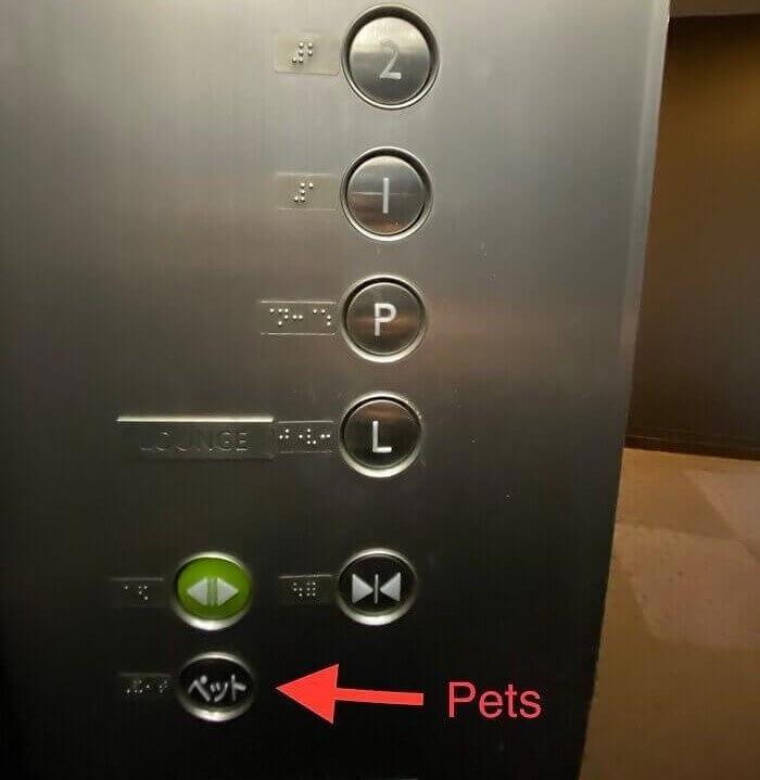 В лифте всегда есть какие-то непонятные кнопки, но эту кнопку почти наверняка никогда раньше нигде не видели. В элитных жилых зданиях Токио эта кнопка предлагается в качестве опции "Домашние животные". Всякий раз, когда кто-то входит в лифт с домашним животным, он нажимает эту кнопку, которая запускает HEPA-фильтр, очищающий воздух. Он также подает бесшумный сигнал тревоги, предупреждающий людей с аллергией избегать поездок в этом лифте до тех пор, пока воздух полностью не очистится.
