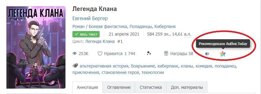 Спешу поделиться радостью, и рассказать что у моего единственного произведения, которое отмечено звездой "Рекомендовано АвторТудей"