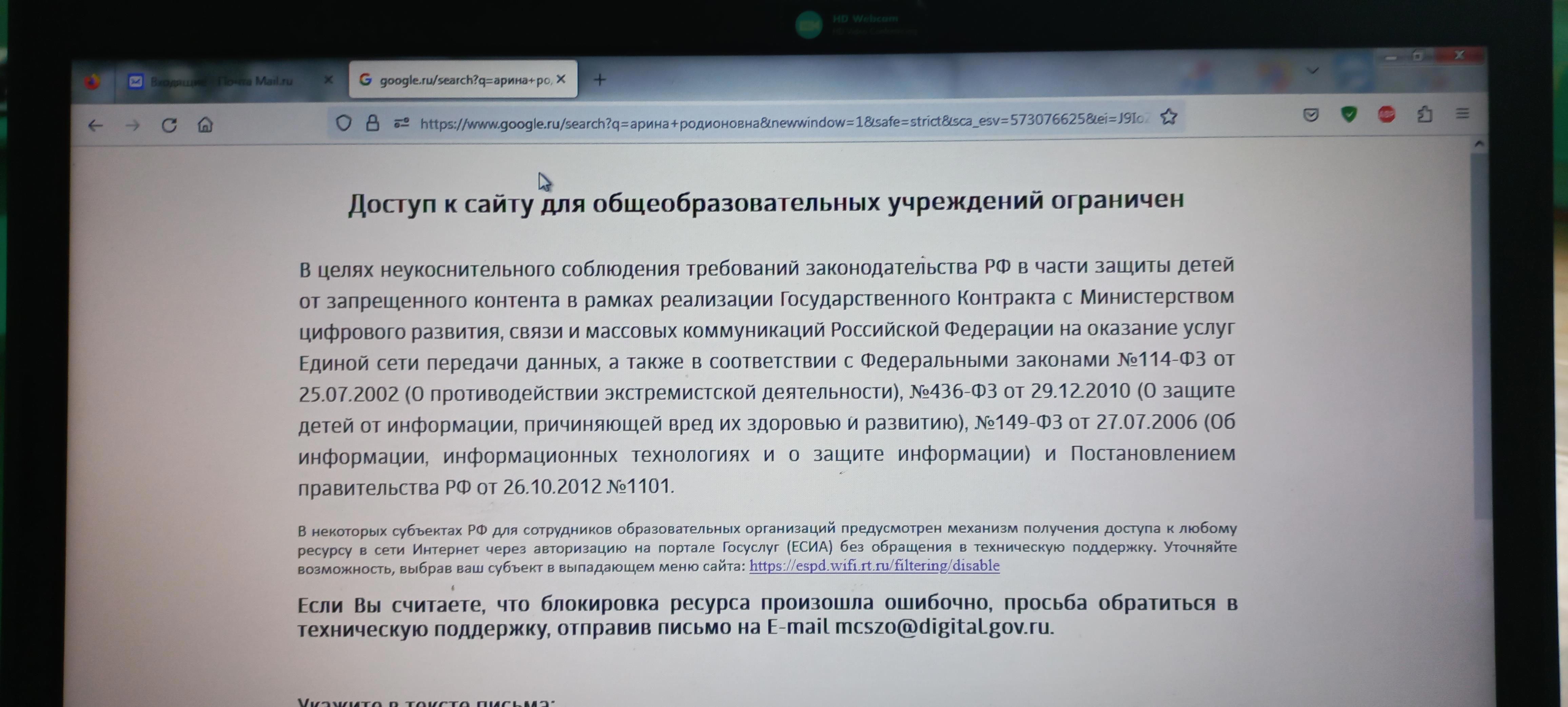 Я ещё понимаю, когда установленная в школьной сети программа-цензор блокирует переходы по ссылкам, найденным по запросам "Паскевич", "Завалишин" и т.д. Но "Арина Родионовна"!