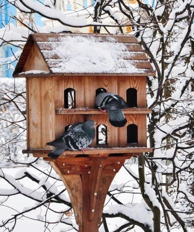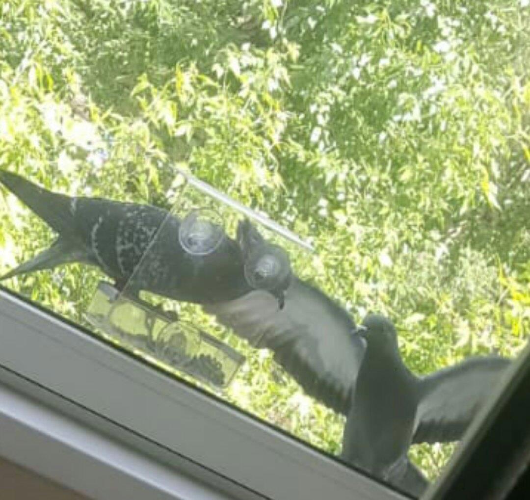 Сперва, насыпав семечки заранее, вечером, ранним утром обнаруживаешь кормушку полупустой. Ещё подумаешь: вот так птички налопались. А потом смотришь – сизая дрянь на кормушке буквально висит, раскачиваясь вместе с ней и хлопая крыльями.
