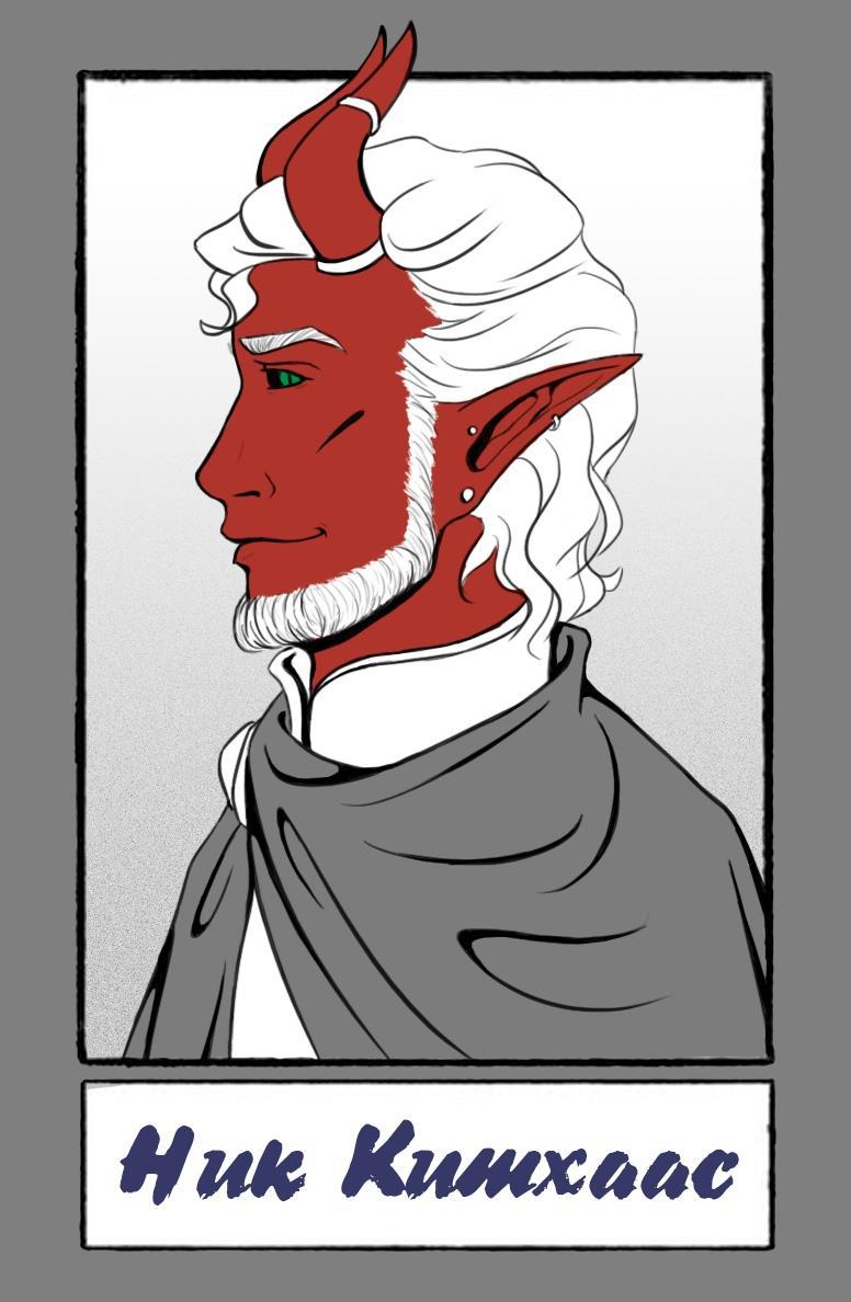 Итак, знакомьтесь: Ник Китхаас, или по-простому Никита. Демонская раса - тифлинг. Место рождения - Пустынный План. Род занятий - охотник за головами и по совместительству нянька для Танюши.