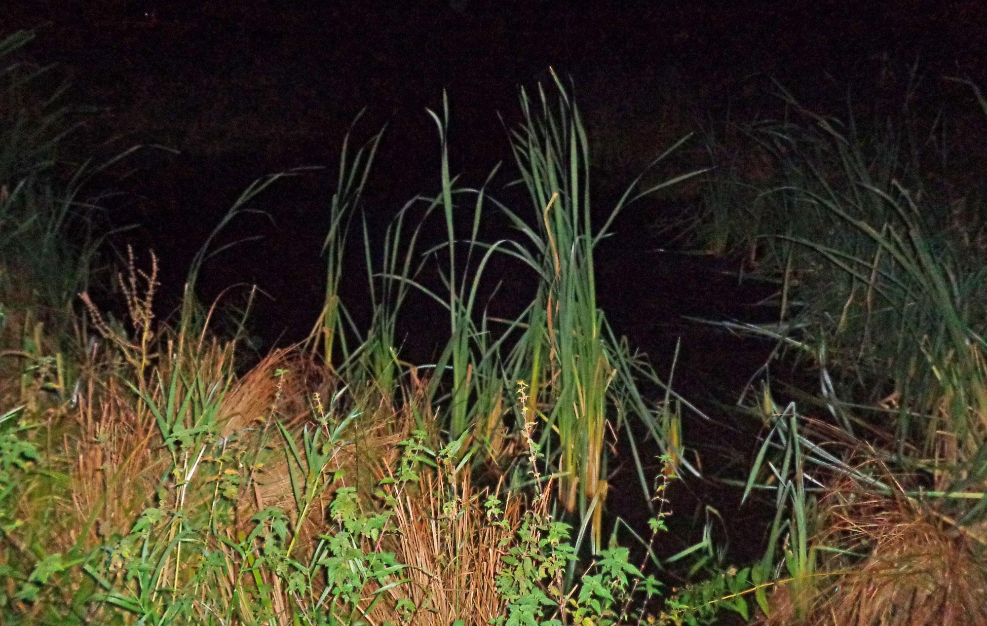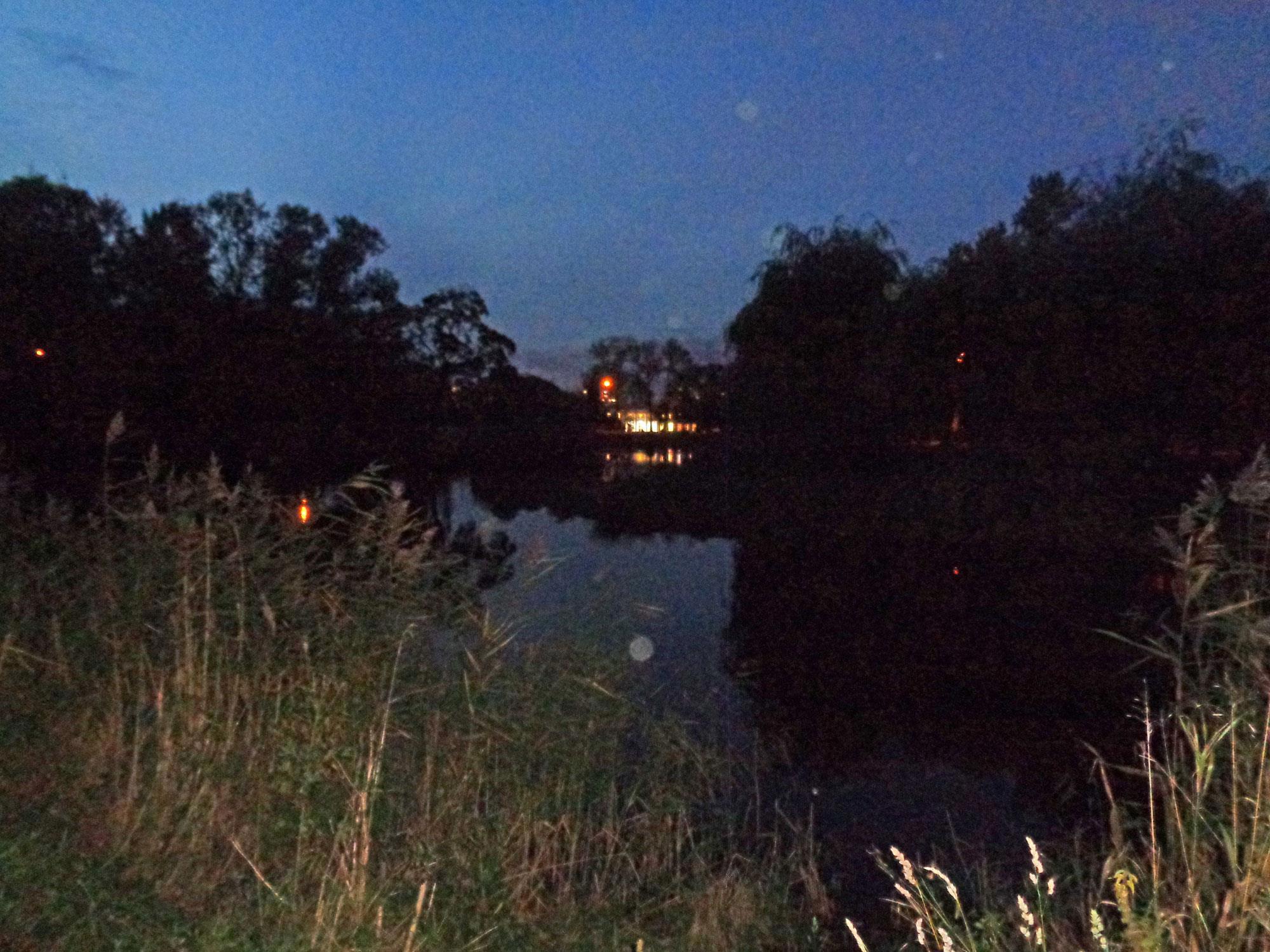 На предыдущем были камыши перед прудом. А пруд за ними, только совсем чёрный.