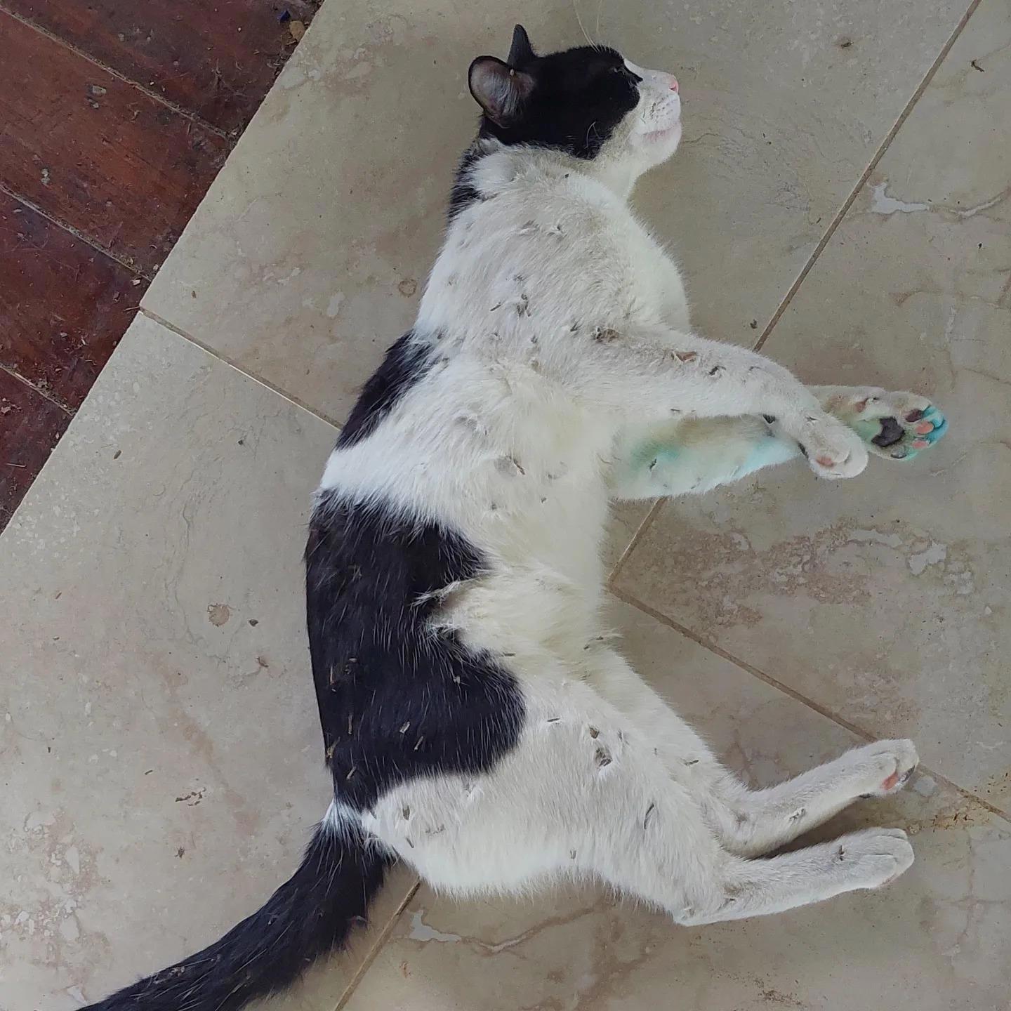 Далее следы кота затерялись, в какие кусты он падал неизвестно, но вернулся в час ночи он уже ежиком.