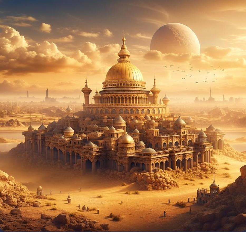 Игнис, столица империи. Рисунок сделан нейросетью Кандинский 2.2