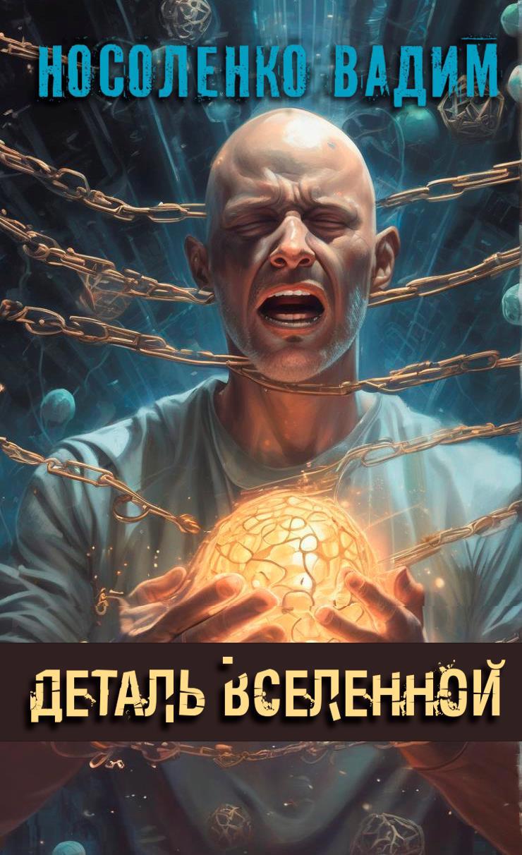 Изображение выполнено в реалистичной манере с тщательной проработкой деталей и ломаным шрифтом мозаики. Я использовал контрастную цветовую гамму: холодные оттенки металла цепей и теплое свечение детали в руках персонажа. Это создает напряжение и подчеркивает борьбу технологического и человеческого начал.