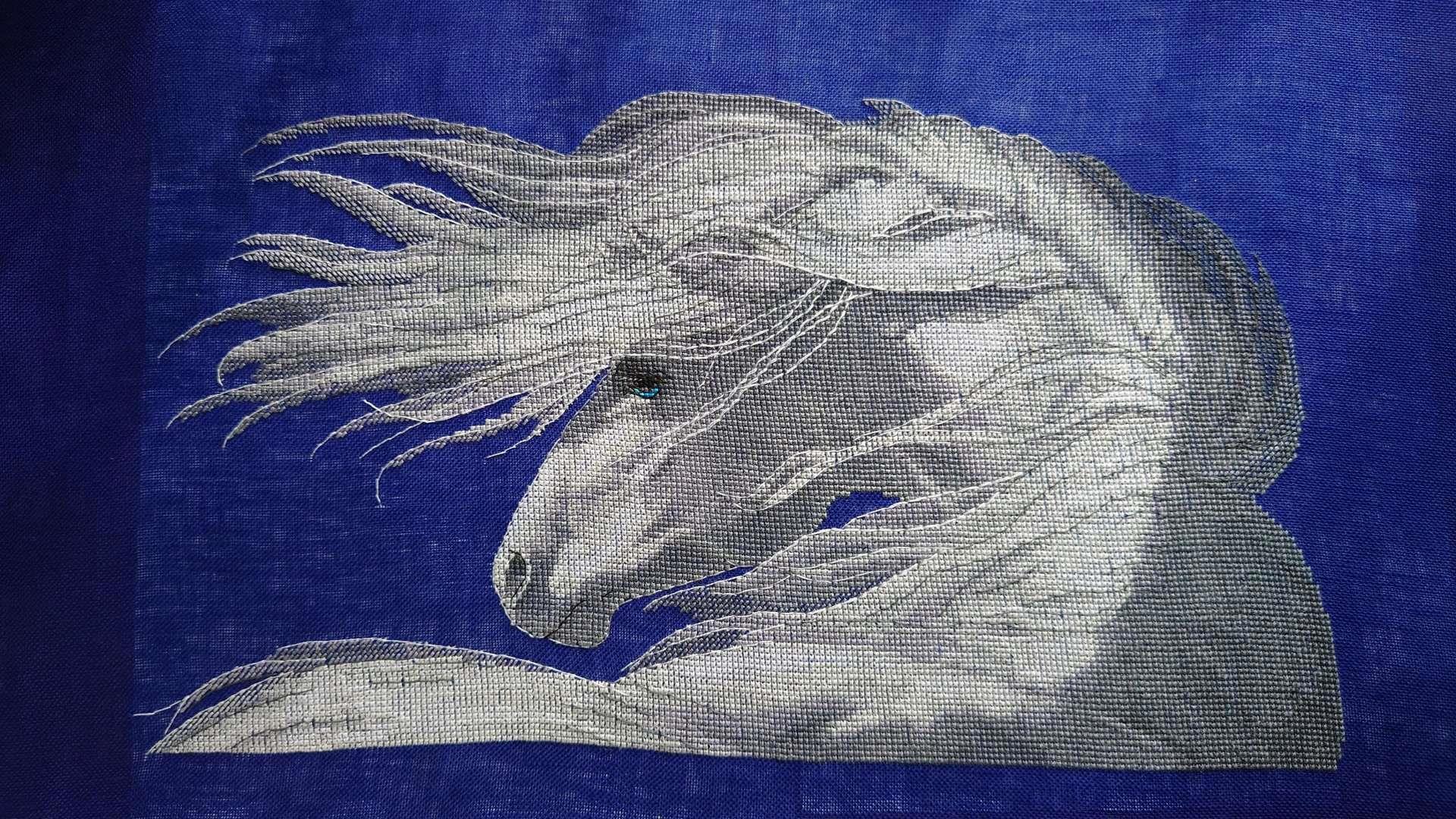 Крестиком я вышиваю давно, но только где-то в 2018-19 перешла исключительно на авторские схемы. Моя последняя недавно дошитая схема как раз из авторских. "Лунная кобылица" от Надежды Гавриленковой.