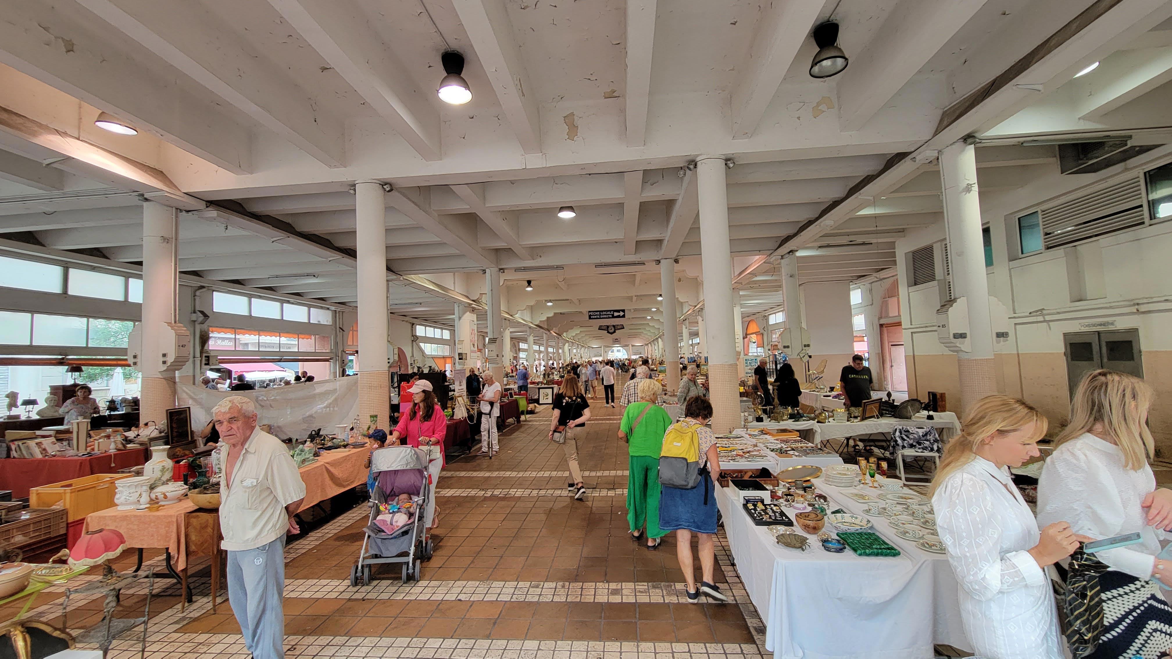 Что интересно. Во второй половине дня Фермерский маркет, как по мановению волшебной палочки, мгновенно превращается Блошиный Рынок, рынок картин и произведений искусства, книг, статей, посуды и всего чего только может прийти на ум. Ка правило это все, что уже было в использовании, " second hand", а иногда вещи эти истинно антикварный качества.