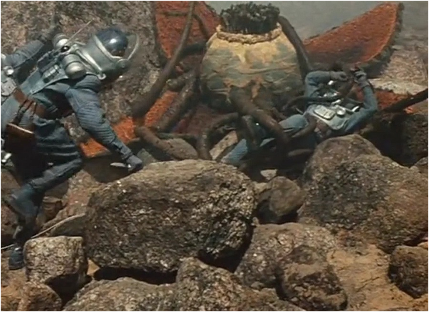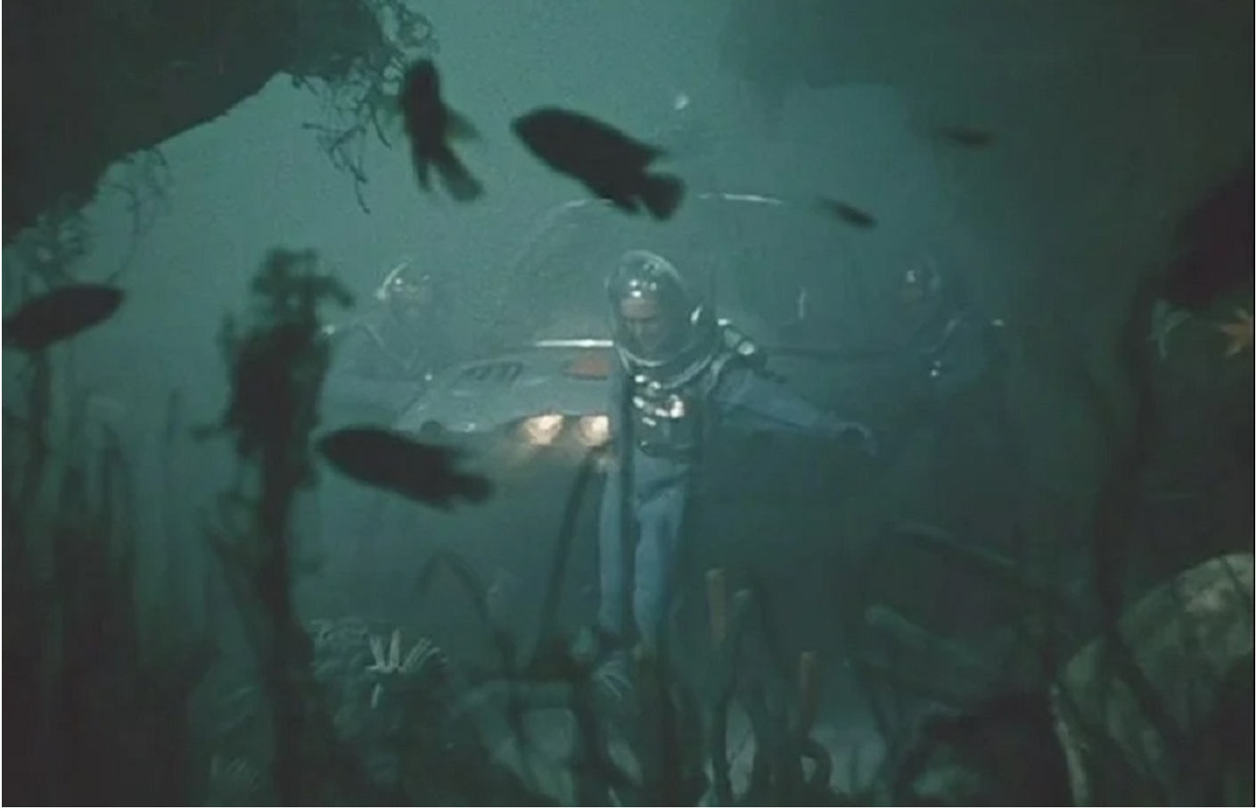 «Подводные» съемки проводили через аквариум с рыбами; позднее такой же трюк использовал режиссер Кэмерон в своём блокбастере «Титаник». Робот «железный Джон» переносит на своих плечах космонавтов через кипящую лаву во время извержения вулкана, но сам тонет в ней с вытянутой рукой – за 30 лет до «Терминатора-2»! К слову, и сцену с Терминатором-1, который обгорает снаружи, обнаруживая свое железное нутро, Кэмерон тоже придумал не сам, а содрал из фильма «Метрополис».