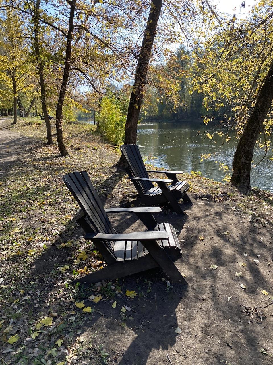 На первый взгляд не примечательные, но как оказалось очень даже удобные. Чувствуешь себя словно на сеансе психотерапии в удобном откидывавшимся назад кресле. Так в отличие от кабинета, здесь вид на реку и на диких уточек!!!