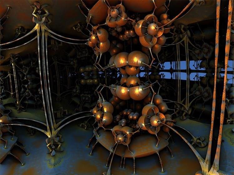 И я снова остался один на один с абсолютно бездушными лиано-гирляндами из разноразмерных и перетекающих друг в друга серебристых шаров, тетраэдров, параллелепипедов, конусов, кубиков… Ну, тех самых реликтовых «излучений» и «артефактов», которые, в форме серебристо-пестрых лент и искрящихся изнутри «бус», как своеобразные кабели, фидеры и провода, как ни в чём не бывало тянулись от пугающе, словно рябь на воде, колышущихся границ золотисто-полупрозрачной, с будоражащими воображение ртутными переливами и разводами, сферы к её вызывающе пустынному гипоцентру.