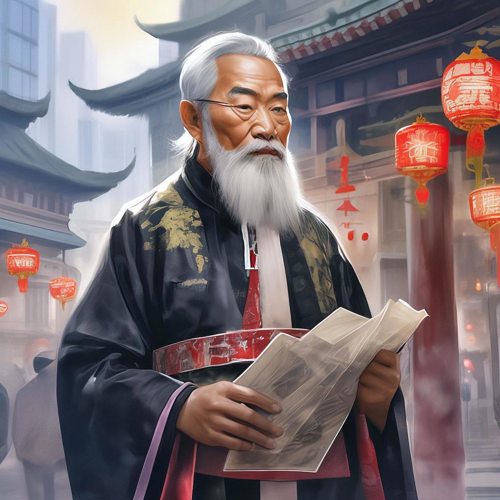 Запрос был такой: fantasy, 50-years-old, старый китайский мастер прорицания и фэншуй, прямые волосы, реалистичный, бумажные талисманы, черный китайский традиционный наряд куртка со стоячим воротником чонсам, в полный рост, современный Китай, улицы города, небоскребы, фэнтези, акварельная прорисовка, яркие цвета, милые, высокая детализация, динамично, высокое качество, профессионально, дымка, крупным планом