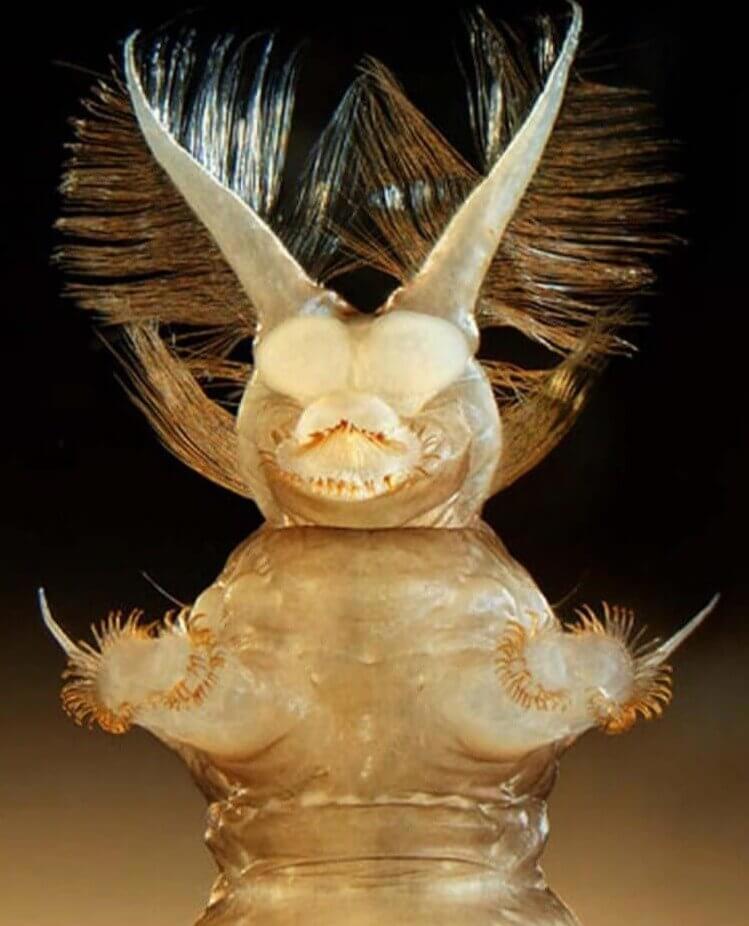 Вам, вероятно, не нужна была еще одна причина, чтобы не любить мух или их личинок, но мы решили, что все равно дадим вам ее. На этой фотографии личинка мухи изображена вблизи, и это буквально наводит ужас. Просто подумай, какой была бы жизнь, если бы эта штука была нашего размера. У него есть лезвия на двух верхних "руках" и рот, заполненный выступающими наружу зубами. Похоже, это было придумано для фильма ужасов или видеоигры.