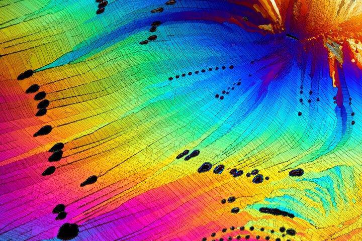 В этом списке есть еще одна фотография, которая показывает, сколько кофеина содержится в разных продуктах, если смотреть на него под микроскопом. Однако на этой фотографии показан активный ингредиент кофеина, и он немного более психоделический. На нем изображена радуга цветов, пульсирующая во все стороны, как если бы мы наблюдали за потоком воды или чем-то подобным. Действительно, удивительно, что кофе на самом деле выглядит именно так, когда его рассматривают под мощным микроскопом.