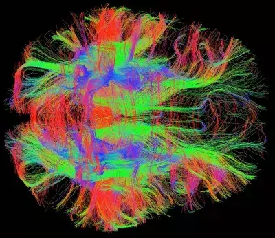 Нервные волокна в мозге здорового взрослого человека, МРТ изображение