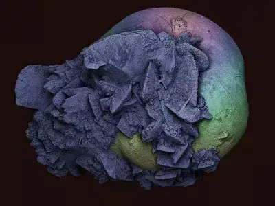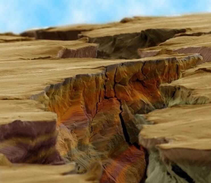 Возможно, вас простят за то, что вы подумали, что это фотография или макет Большого Каньона. Это не. Вместо этого это пристальный взгляд на крошечную микроскопическую трещину в стали. Внутри "каньона" вы даже можете увидеть различные слои или цвета, похожие на то, что вы могли бы увидеть в реальном каньоне. Действительно увлекательно думать, что даже после плавления и формования сталь в некоторой степени сохраняет свой естественный вид, когда вы рассматриваете ее под микроскопом.