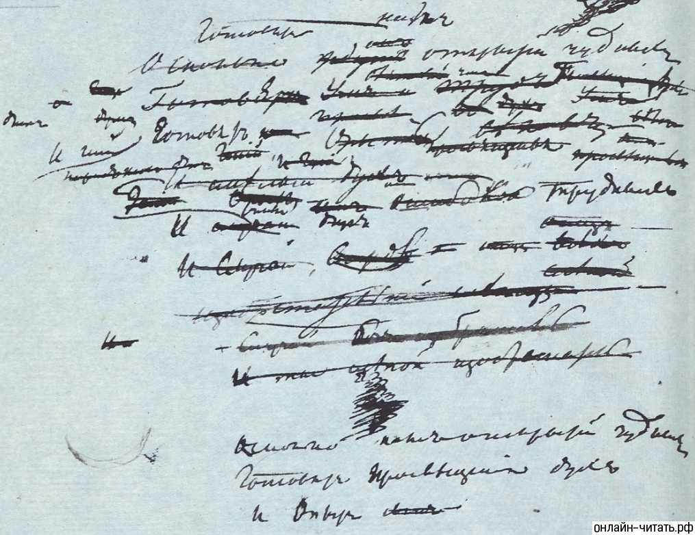 Вообще, это пятистишье интересно не только отношением к телепередаче. Это стихотворение при жизни Пушкина никогда не публиковалось и было восстановлено после смерти поэта по черновикам. А в черновиках оно выглядело вот так: