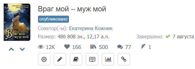 Книга вторая, первая не отозвалась у читателей. А вот эта очень резво вложилась во все показатели, которыми грозил АТ и понравилась читателям. Мой первый эксперимент в соавторстве, в ромфане, в "попасть в жанровую подборку" и всё такое)). Нежно люблю её.