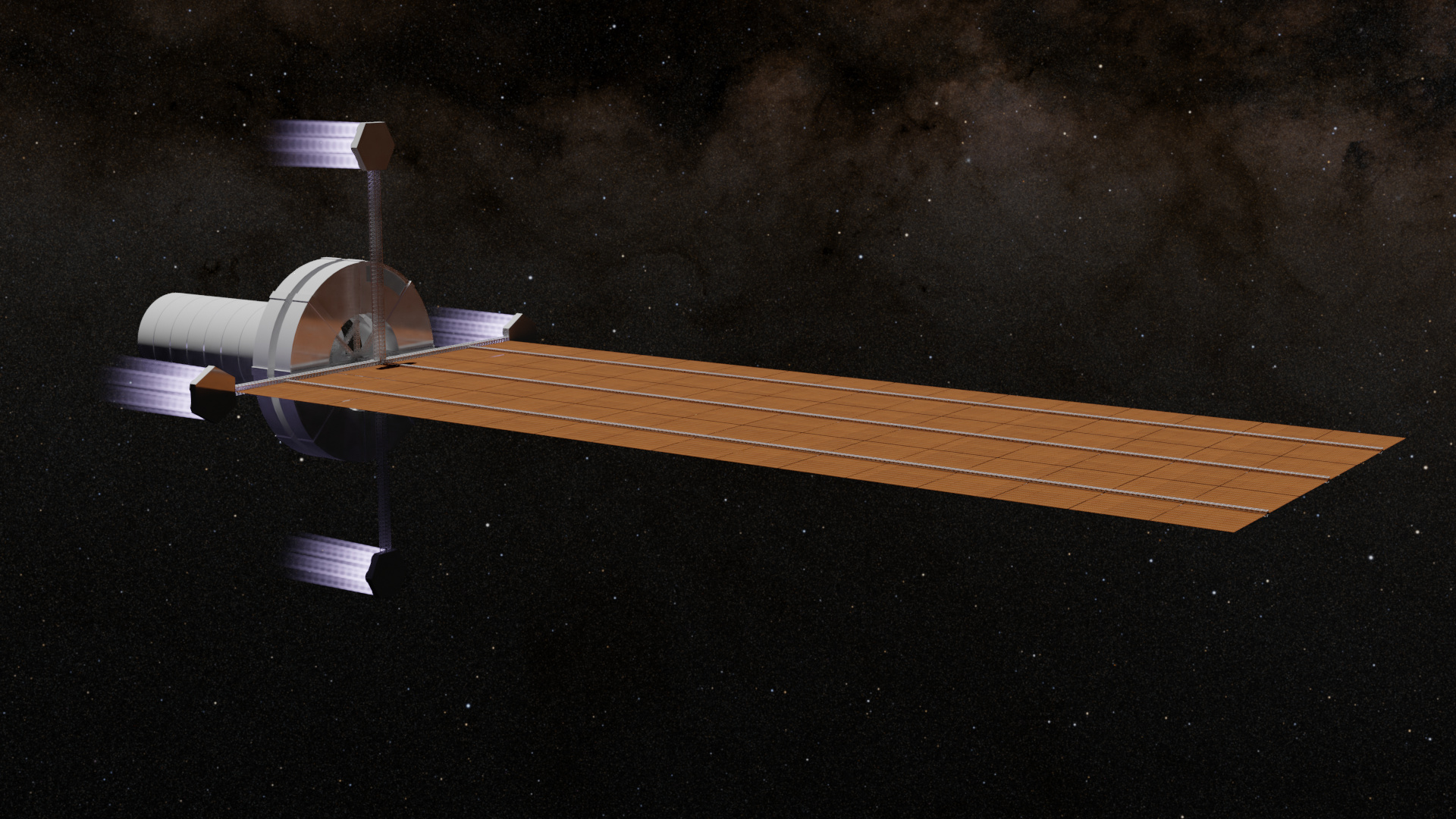 Другой вариант — хайлайнер. Километровый солнечно-электрический буксир с минимум двумя жилыми центрифугами