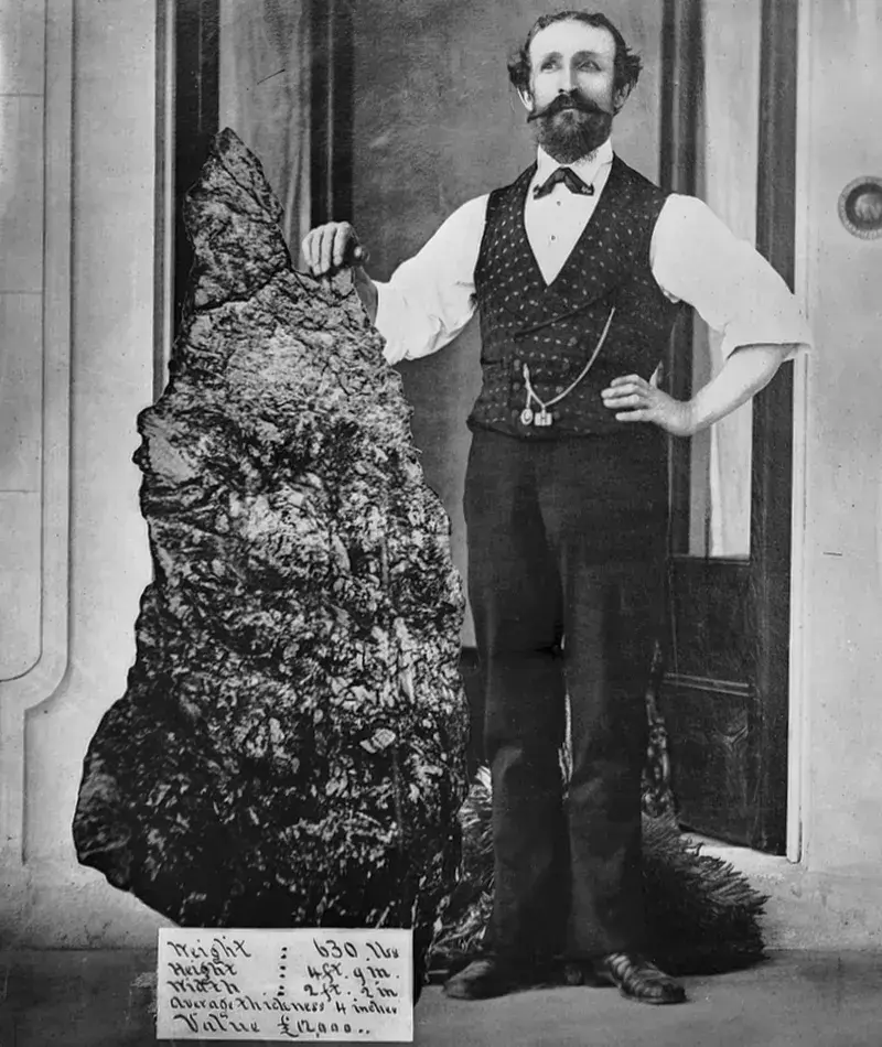 На этой фотографии золотодобытчик Бернхардт Отто Холтерманн позирует с золотом стоимостью более 15 миллионов долларов