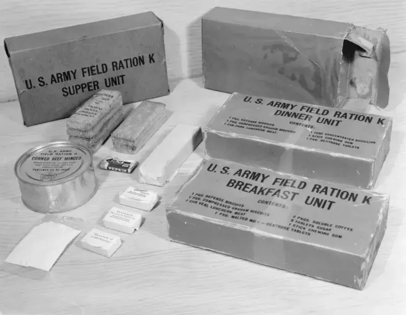 Чтобы справиться с интенсивными физическими нагрузками, эти солдаты использовали компактные армейские рационы, в состав которых входили некоторые удивительные ингредиенты. Армейский рацион включал крекеры, мясные консервы, маленький кусочек шоколада и даже коробку жевательной резинки и сигарет. Каждый рацион содержал до 3000 калорий, что было разумным количеством для мужчин, которые целыми днями сражались в морозную погоду.
