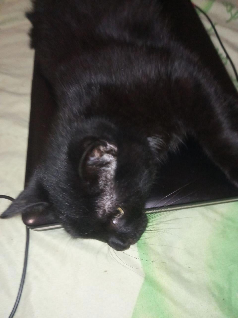 Я точно не знаю, как такое произошло, ноут лежал на постели, никого не трогал. Предполагаю, что кто-то на него сел. И предполагаю, что это была жирная котячья жопка. Потому как больше некому.