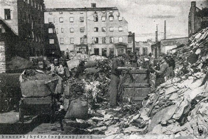 Немцы на разборке завалов. Бабы и подростки. распоряжается прнедставитель польской администрации в костюме и с полномочиями. Тот который стоит руки в боки.