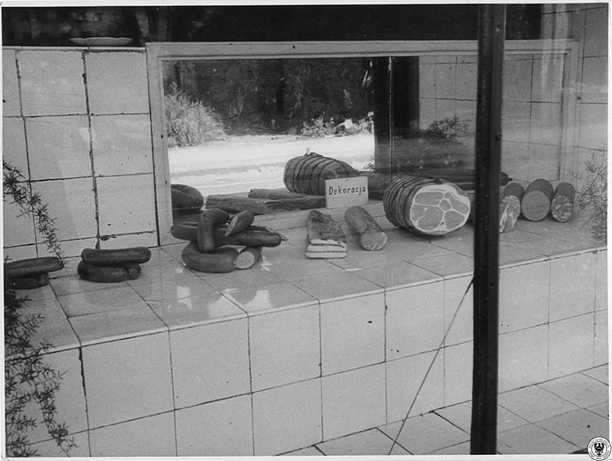 Витрина магазина. Выставлена декорация, но продавалось именно то, что выставлено в виде муляжей, не просто украшательство. Склады в Бреслау были громадные. Правда уже не для немцев.