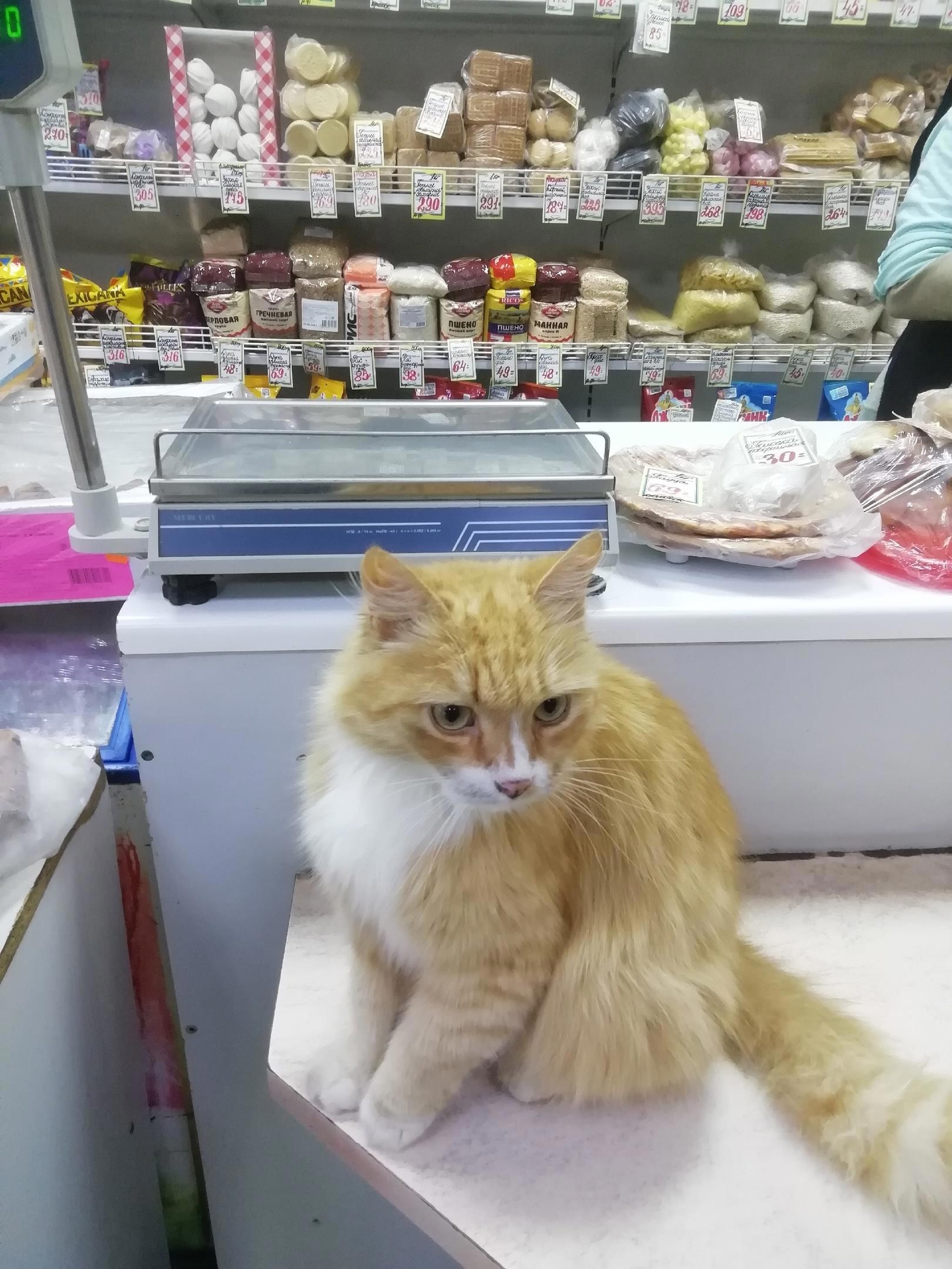 А это кот-продавец из одного из соседних несетевых магазинов. Продает всё, в том числе и рыбов (копчёных):