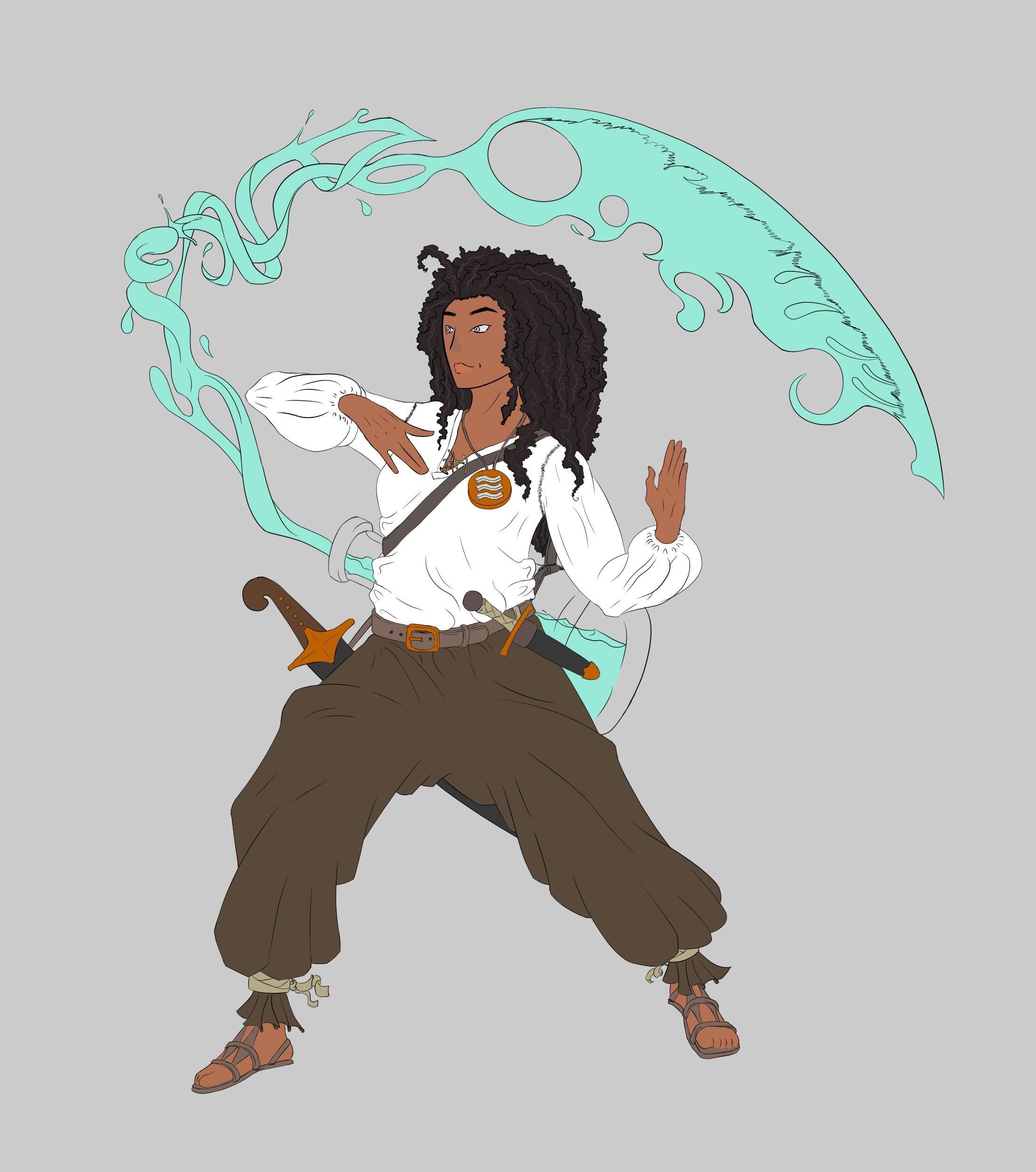 Я вообще-то Мастера воды из Болунтура рисовал! А что вышло? Всё у меня было скучно, от деревянной позы, до мочалки вместо волос, от воды которая похожа чёрт знает на что, до снаряжения, ни разу не сбалансированного по композиции. А ведь я сам о насмотренности говорил в одном из недавних постов! Я ведь знаю, что могу лучше! В общем, я не выспался той ночью. И сегодня утром сразу взялся за рисунок. Двенадцатая глава немножко потерпит.