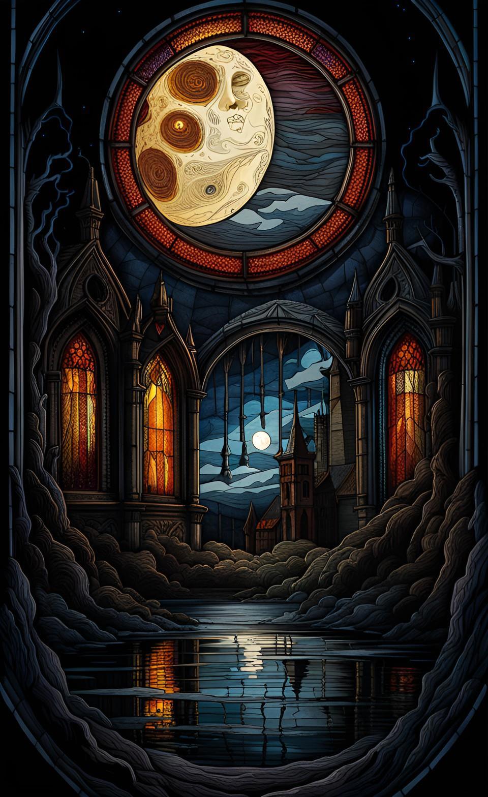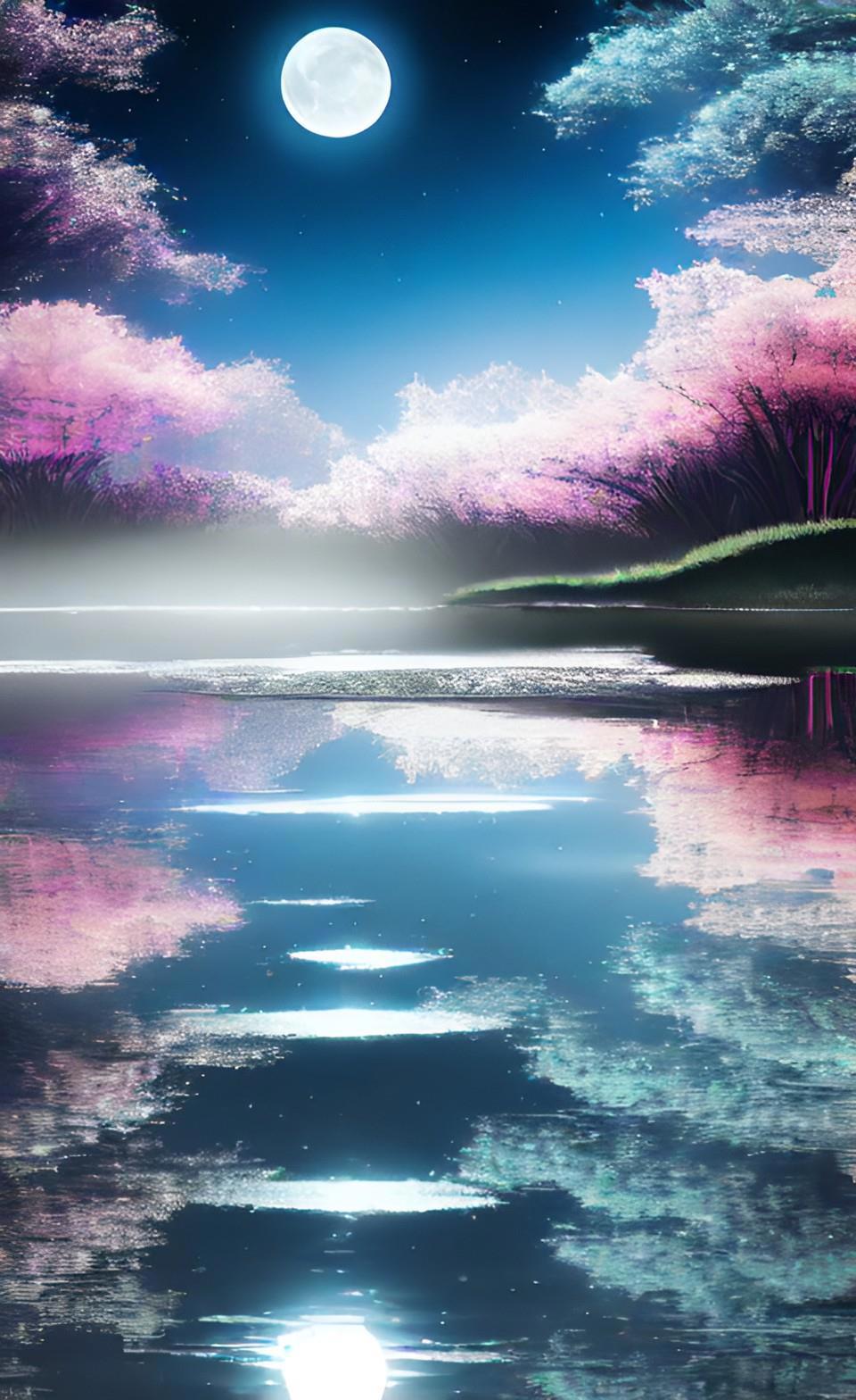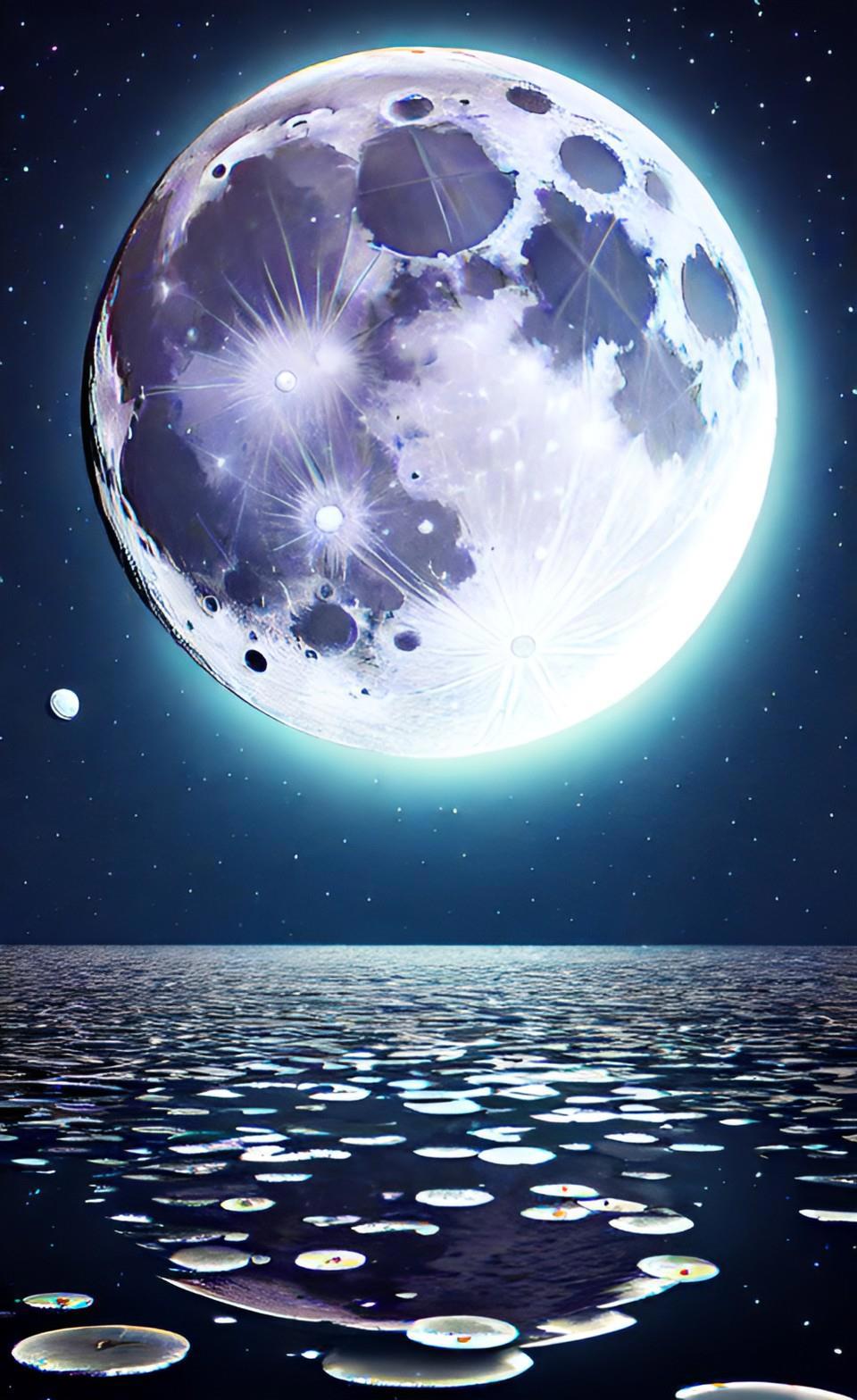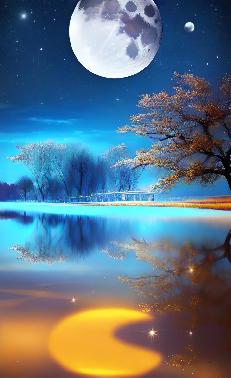 6. Луна в отражении (это название в midjorney не пробовала), но dream прекрасно справилась, поэтому поигралась с разными вариациями (увлекло) и вот что получила