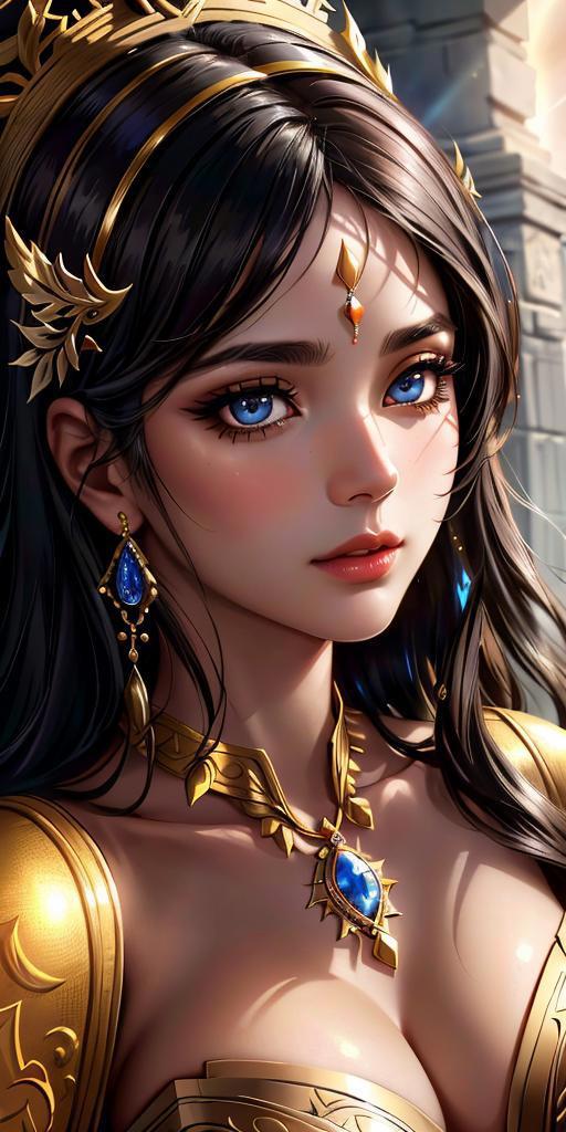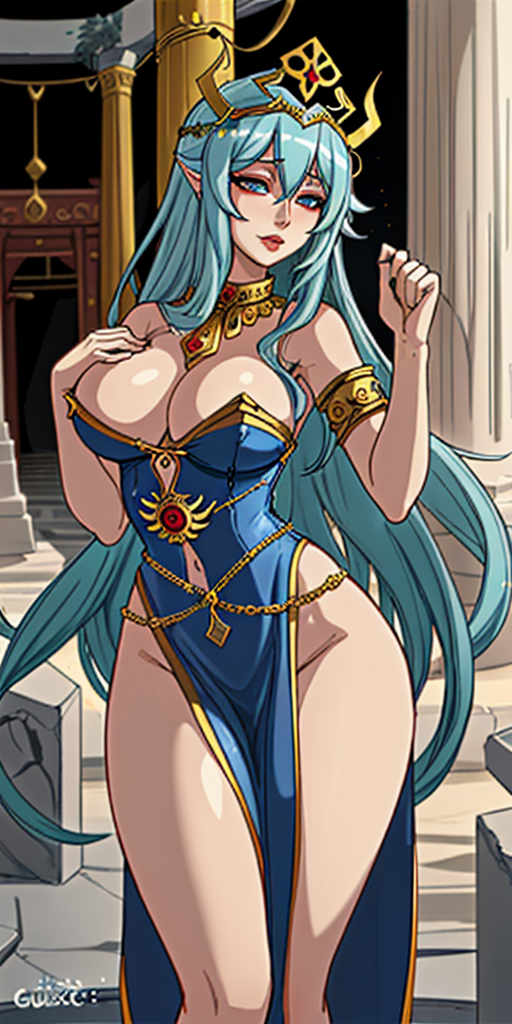 ...плюнул и взял другой рассказ - Ефливия Похотливая, Верховная Жрица в Храме Бога Похоти. Тоже не стал пихать это в Кандинского, а прогнал через стаблу по тем же параметрам что и выше (без всяких стилей и негативных промптов).