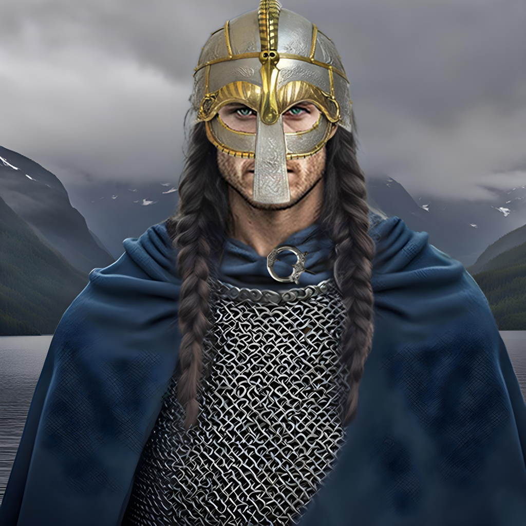 Альрик конунг норвежцев (он же Альрик Конунг Фьордов, т.е. конунг всея Норвегии) перед битвой с Эйриком конунгом данов и Хаконом ярлом из Хладира (Норвегия, фюльке Трёндалёг/Троннелаг/Трандхейм).