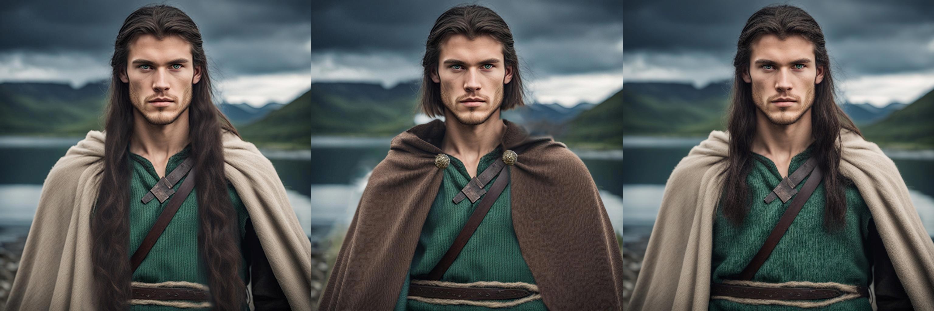 Фото выстроены в хронологической последовательности. Нет, Альрик в рабах не был (фото 2, короткие волосы), он отдал волосы в залог великану Мимиру, чтобы испить из источника мудрости. Только тогда будущий конунг не знал, что Мимир возьмет с него больше, чем потребовал.