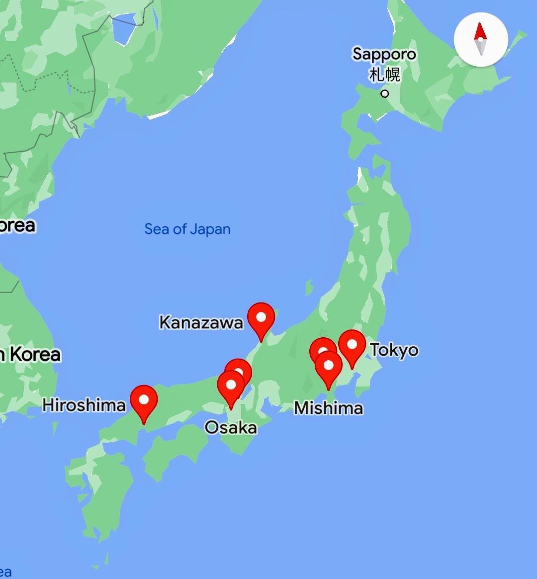 Япония, Киото потерялась. У Нары надпись не видна :)