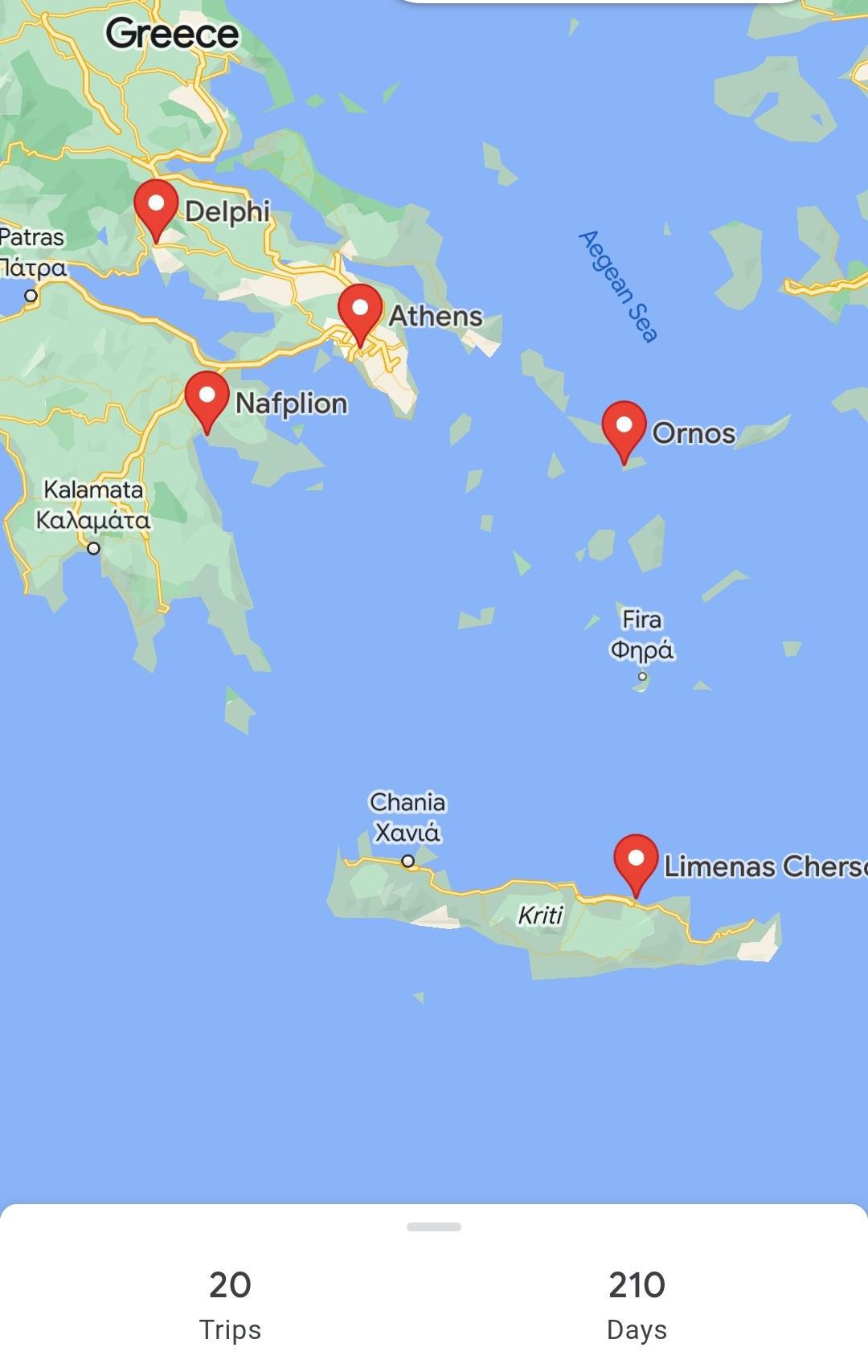 N.B. Вчера Гугл / Google прислал мне свою статистику моих путешествий за 210 дней. Наверное, имелось ввиду, что на 20 поездок было потрачено 210 дней, но произошло это в течении 4 лет, а то и больше :)